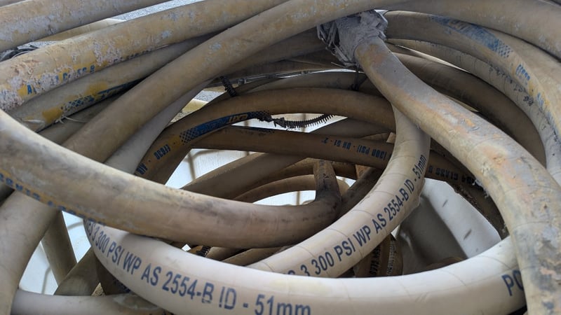 Air/Water Delivery Heavy Duty Hoses, EF630, AS2554 Class B 20 Bar (300 PSI) DN51 2", Powaplex Airminer Series 3 300PSI WP AS 2564-B ID 51mm, Unknown Lengths, With Connections, Quantity Per LotSold As Lot