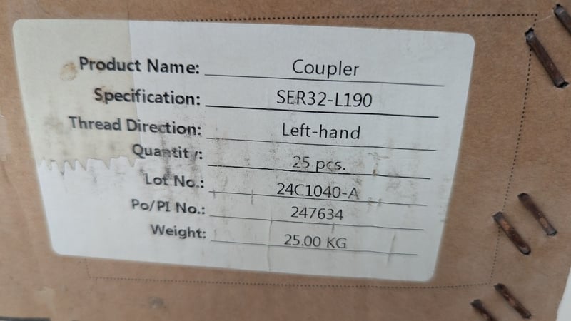 Couplers, Model: SER32-L190 - 24C1040-A, Left Hand Thread Direction, Dimensions: 19cm(H)×4cm(W), Quantity 25
