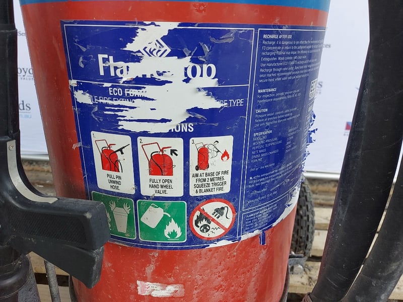 Large Fire Extinguisher, FlameStop Eco Foam F3, Rechargeable.Dimensions: 130cmH x 80cmD x70cmW