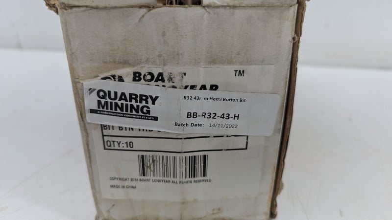 R32 43mm Hemi Button Bit, Quarry Mining, Part No: BB-R31-43-H, Dimensions: 11.5cm(H)×4.5cm(W), Quantity 10Sold As Lot