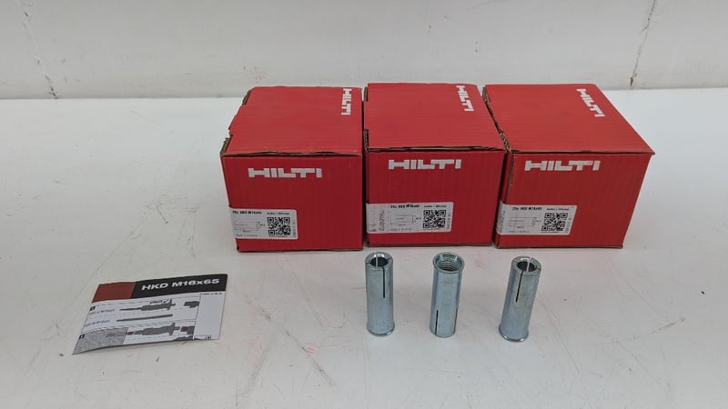 High Performance Carbon Steel Tool Set Drop In Anchor with Metric Thread, Hilti, Model: HKD M 16×65, 25 PC's Per Box, Quantity 3Sold As Lot