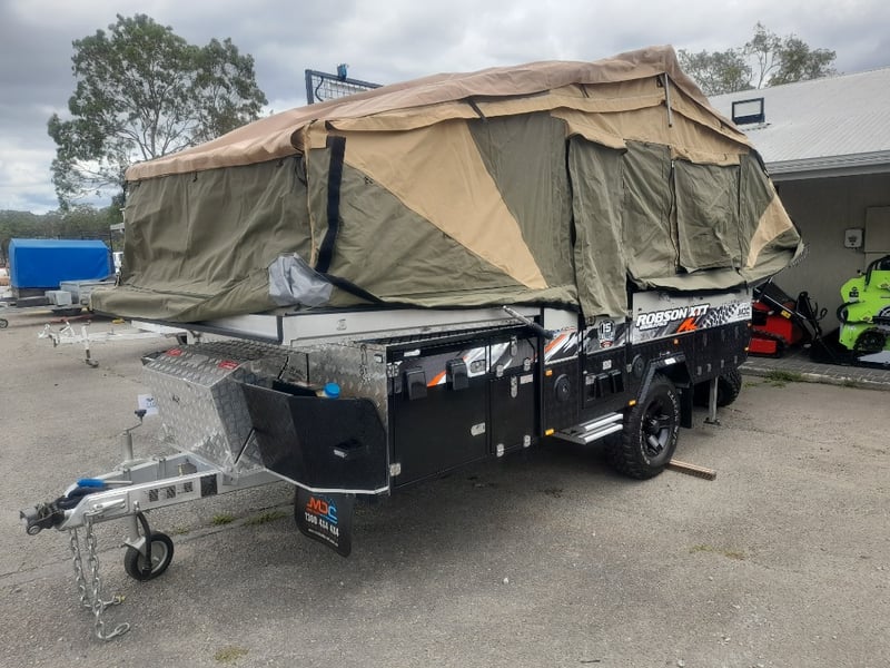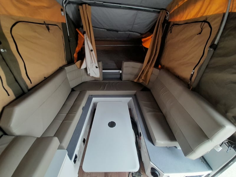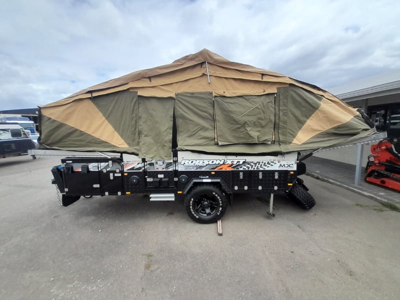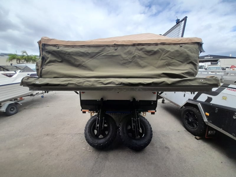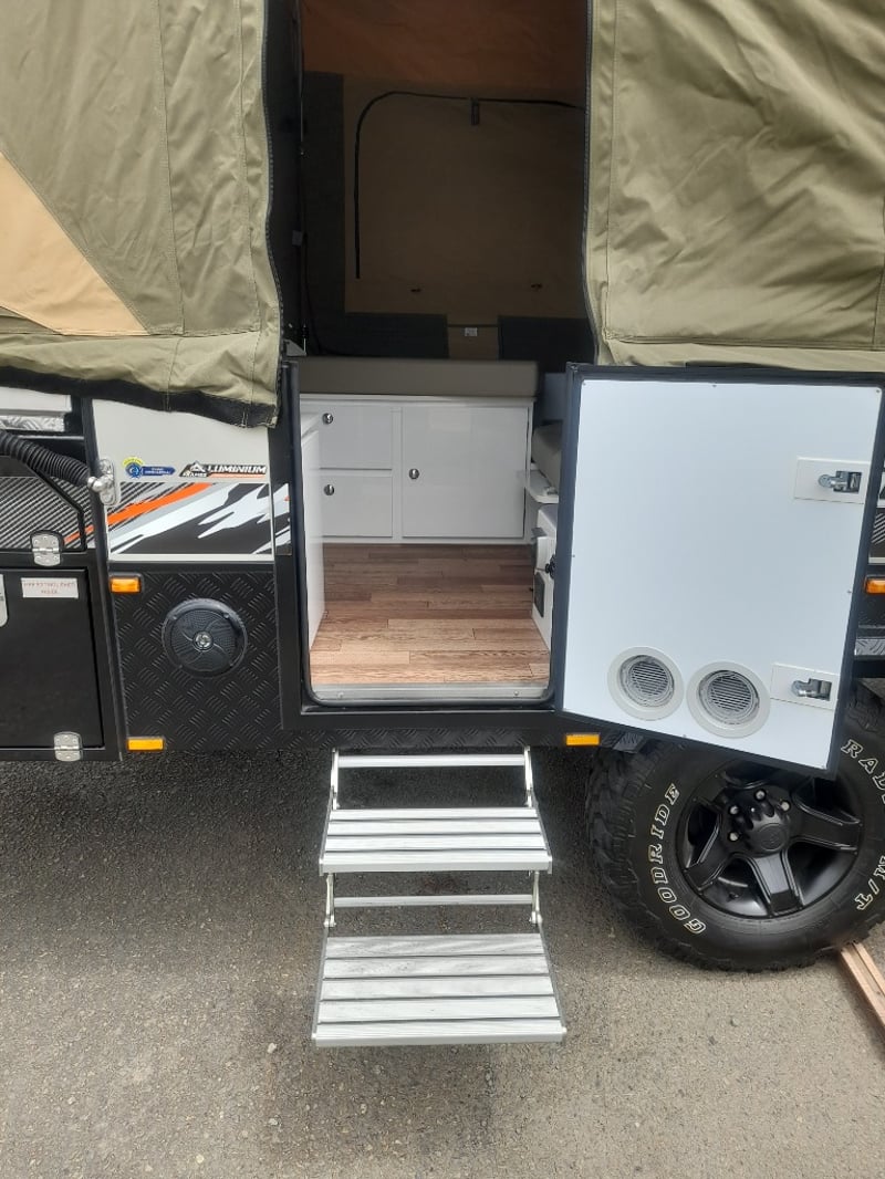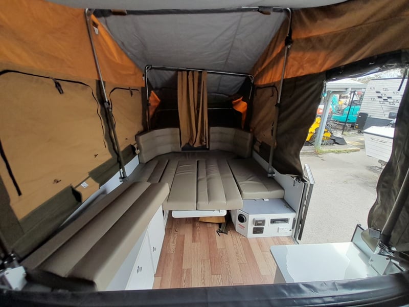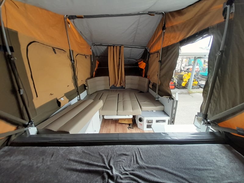 Description Extras: Dual fold camper, 6 Berth, queen bed, hot water, diesel heater, 200Ah Lithium battery, club lounge, solar battery charger, full Annex, 2 x 9kg Gas Bottle Storage, 120L fresh water tank, slide out external cook top, fridge slide passenger and dri er side, external shower tent, stereo with blutooth, USB charging ports,