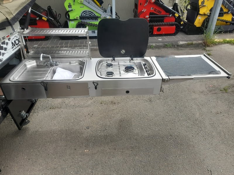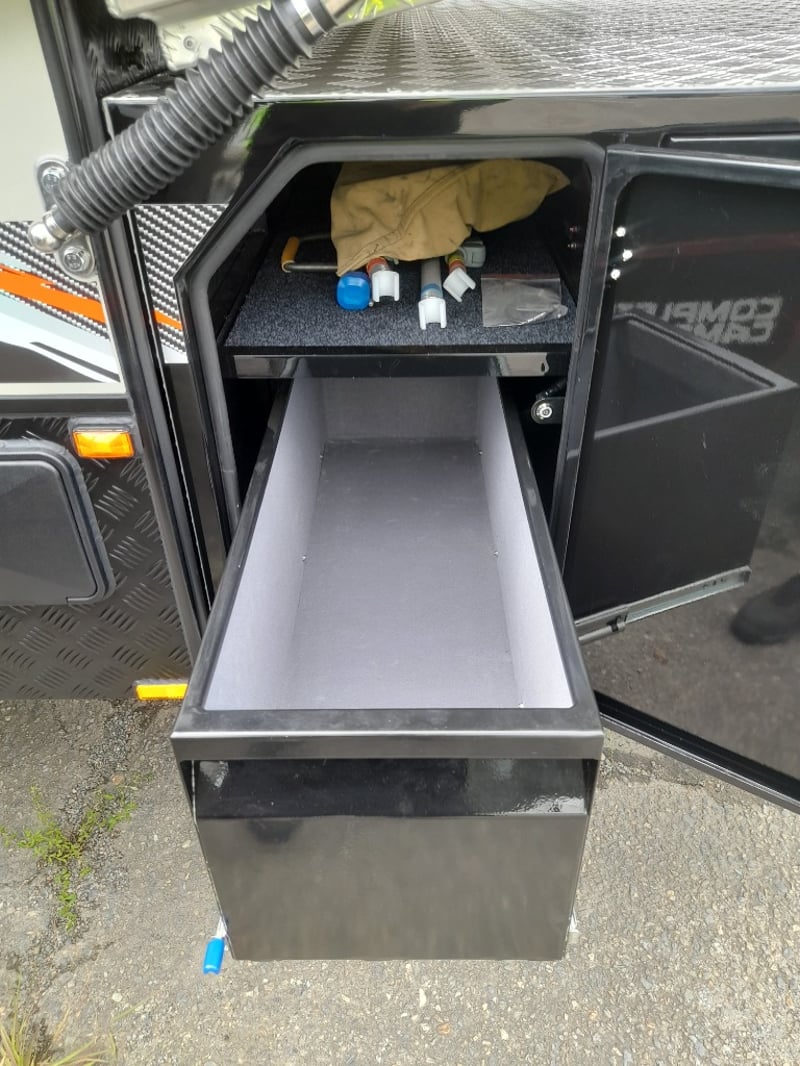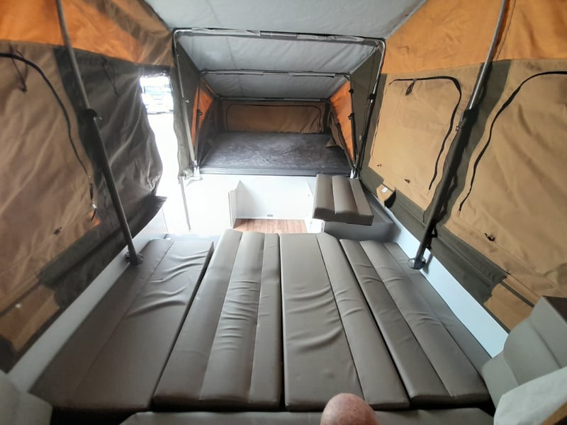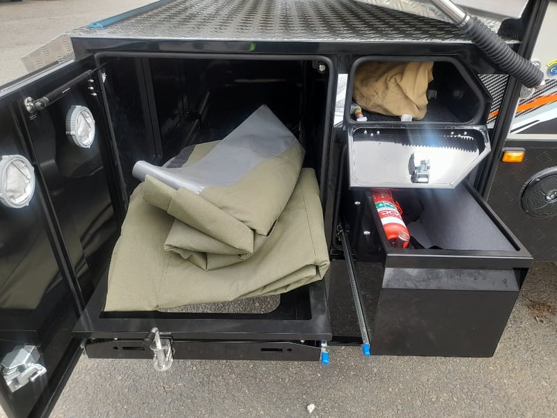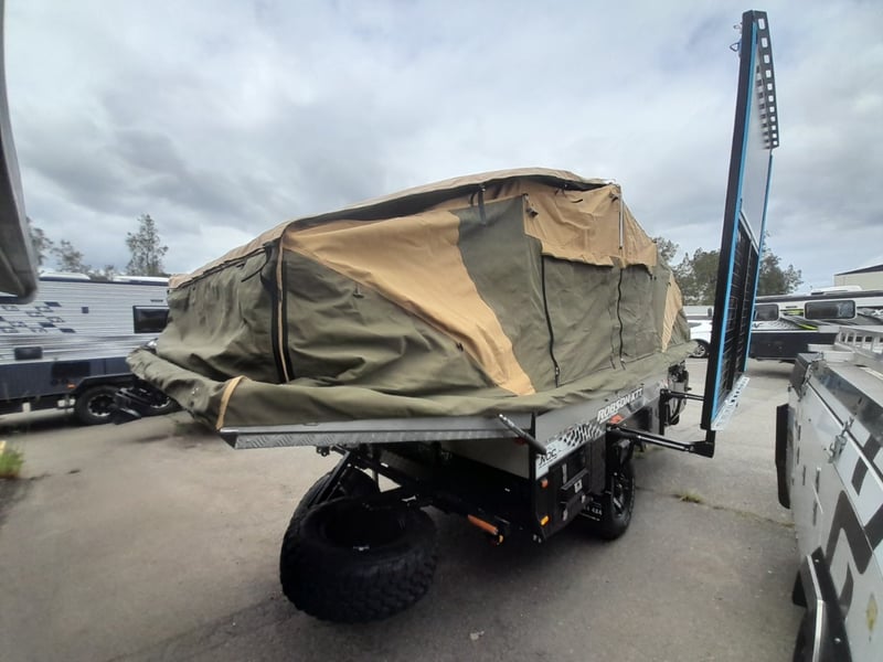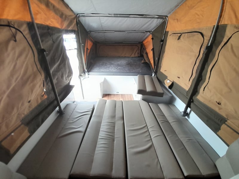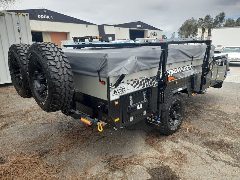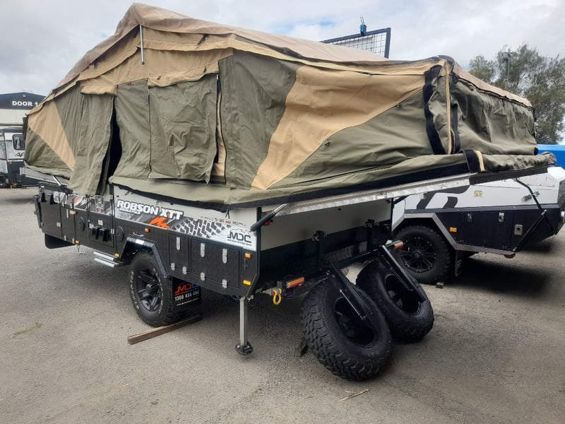 Description Extras: Dual fold camper, 6 Berth, queen bed, hot water, diesel heater, 200Ah Lithium battery, club lounge, solar battery charger, full Annex, 2 x 9kg Gas Bottle Storage, 120L fresh water tank, slide out external cook top, fridge slide passenger and dri er side, external shower tent, stereo with blutooth, USB charging ports,