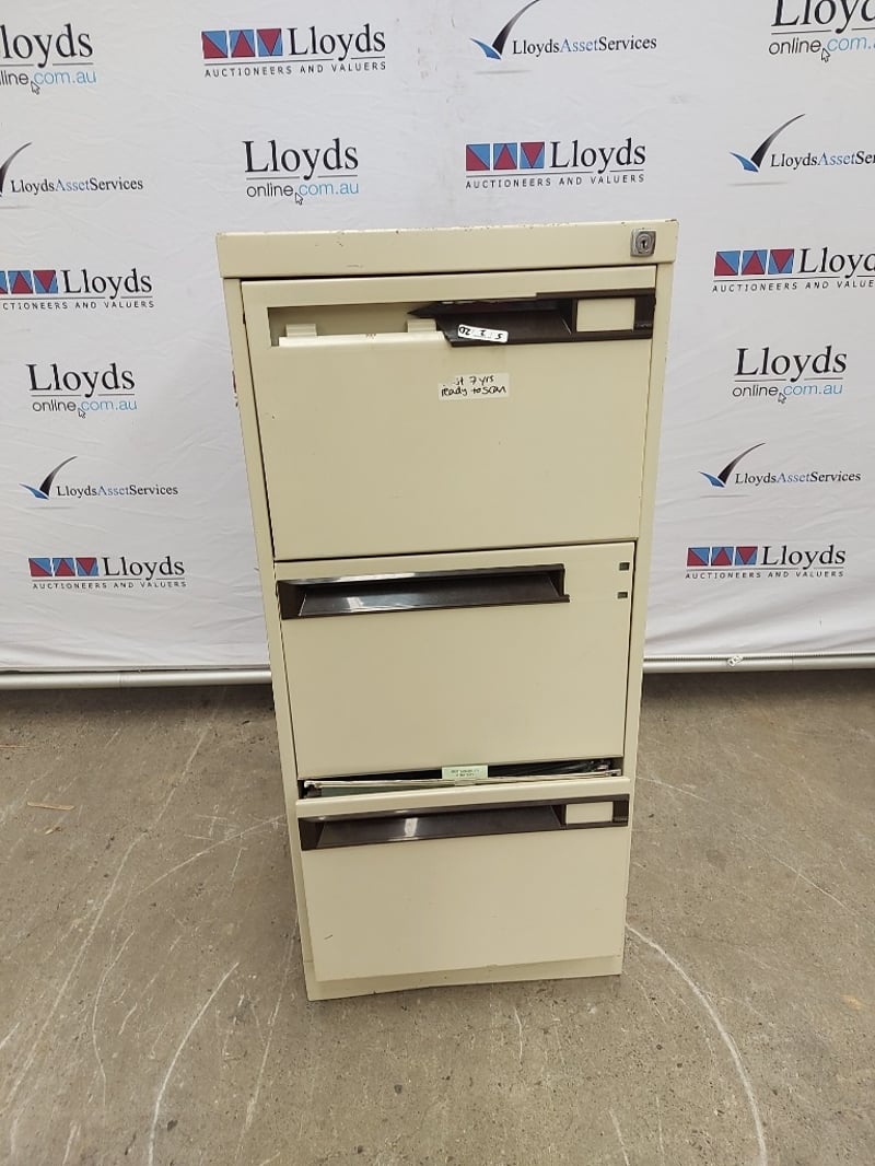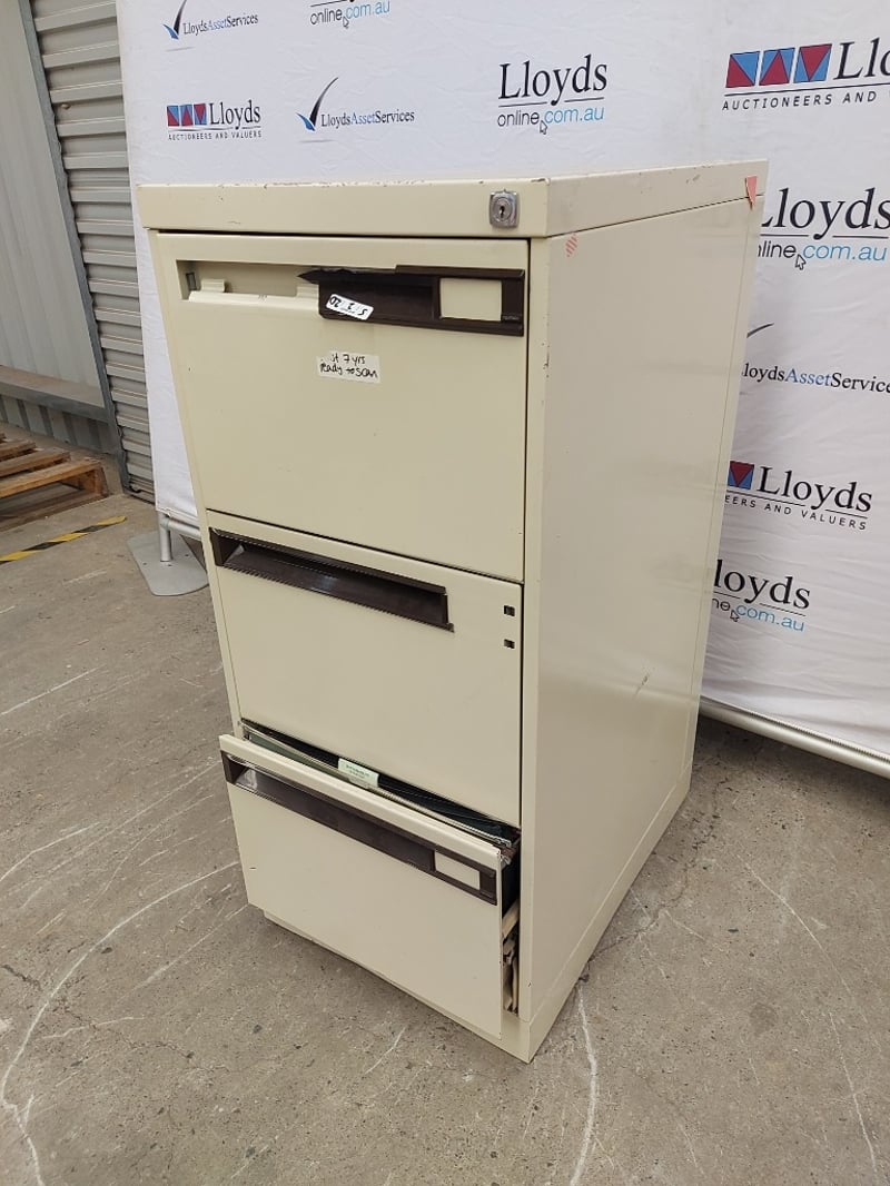 Metal Fileing Cabinet ×3 Draws, With Lock No key, Dimensions 102cmH×47cmW×6×cmDDraw Dimensions 25cmH×38cmW×56cmD