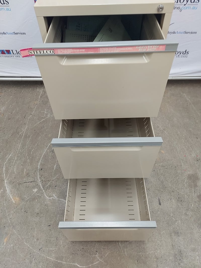 Metal Fileing Cabinet ×3 Draws, With Lock No key, Dimensions 102cmH×47cmW×6cmDDraw Dimensions 25cmH×38cmW×56cmD