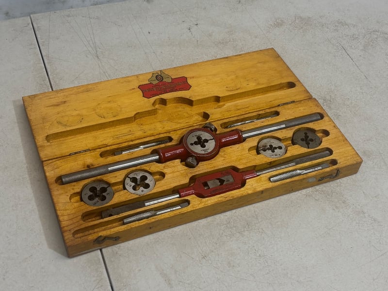 Vintage Tap & Die Set, Brand: Trade Mark Patience & Nicholson Ltd, Wooden Case