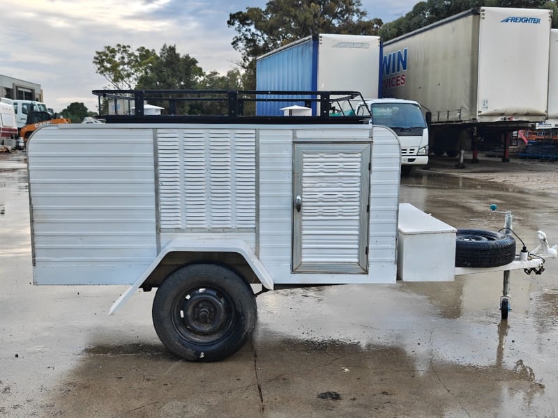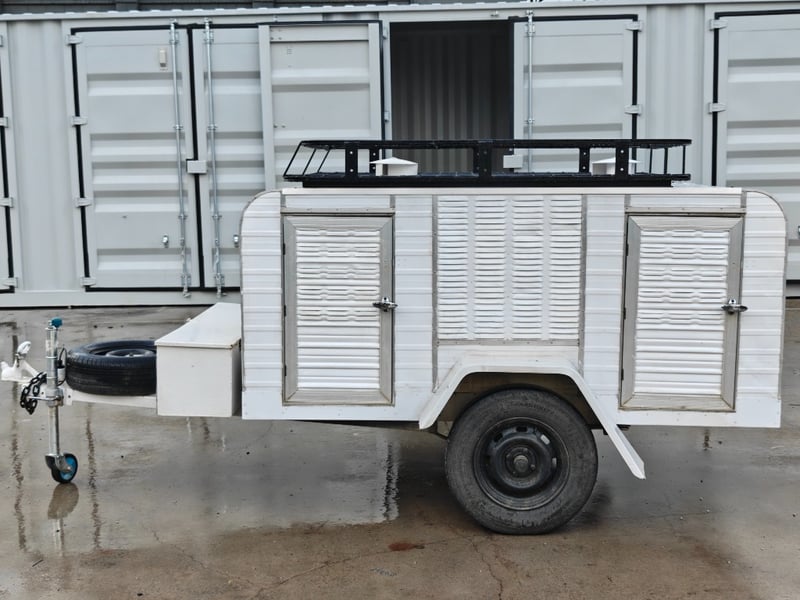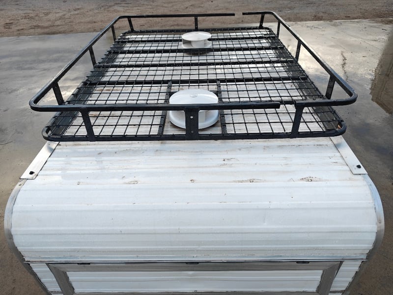 Vendor Description: includes front tool box and spare tire, double compartment doors, solid interior walls, rhino roof rack, and new marine carpet