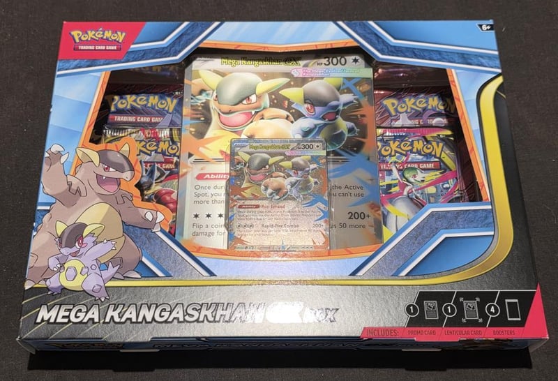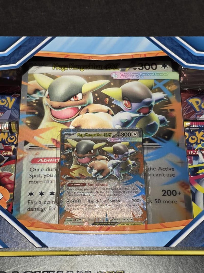 POKEMON TCG EX BOX, MEGA KANGASKHAN EXEx Box Includes, 1 Foil Promo Card Featuring Mega Khangaskhan Ex, 1 Oversize Lenticular Promo Card, 4X Pokemon Tcg Mega Evolutions Booster PacksCondition: Good - Refer To Images584435+2