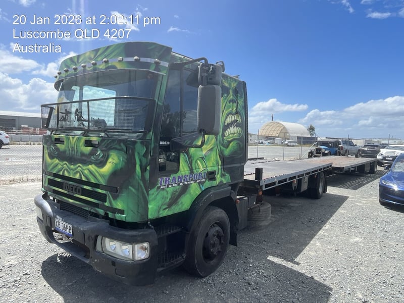 2003 IVECO EUROCARGO TRAY TRUCK With Dog Trailer Year: 2003 Make: Iveco Model: Eurocargo VIN: ZCFA1EJ0102411514 Engine: Unsighted Transmisson: Unsighted Colour: White Description: Eurocargo Flatbed With Dog Car Trailer Note: Truck is located in Luscombe (not at the abandoned vehicles yard) Asset No: 1629290 Location: Pimpama, QLD