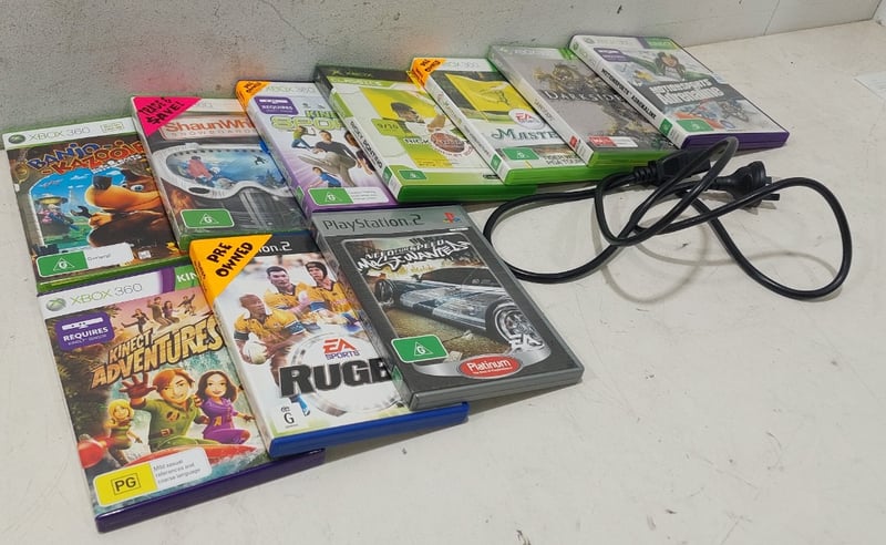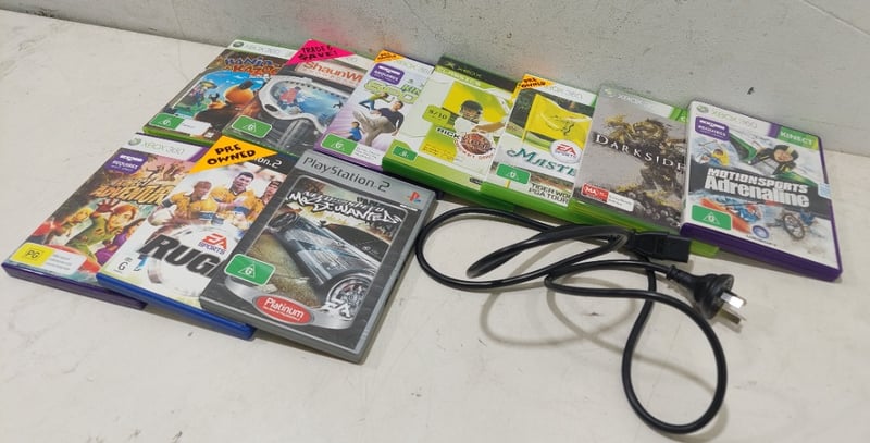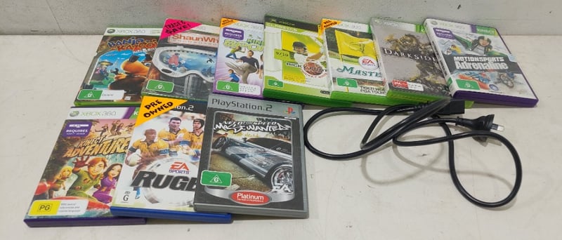 Assorted lot includes, X box , playstation games and power cable. Sold as a lot. Notes: items untested and signs of wear.