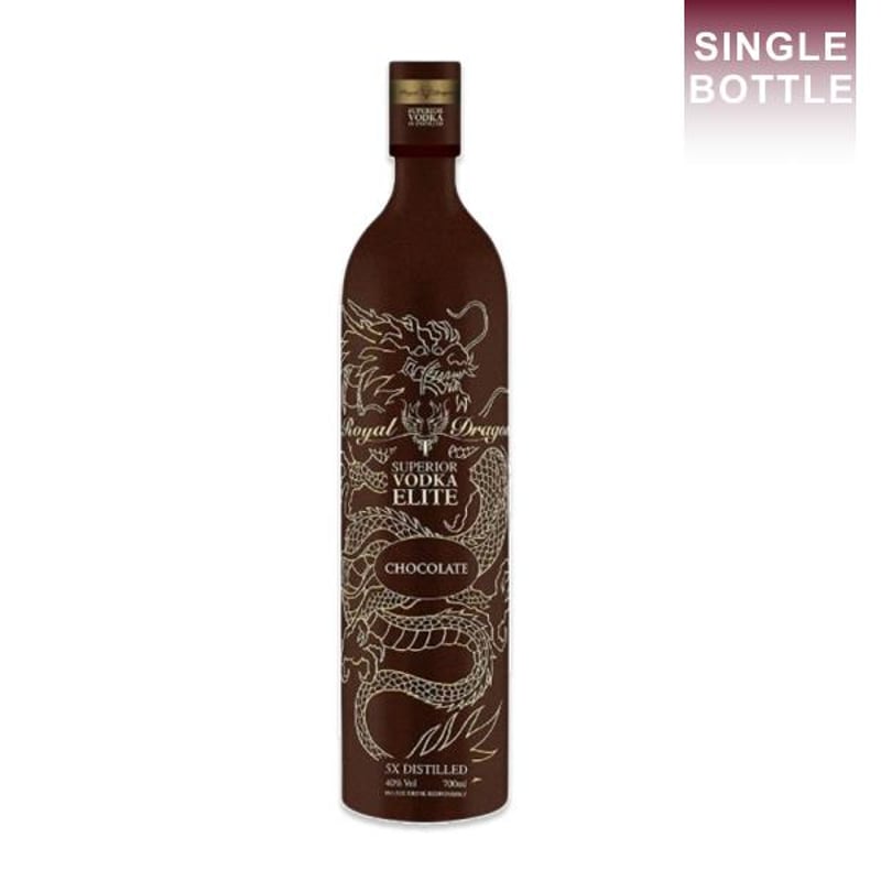 Chocolate Royal Dragon Superior Elite Vodka, 700ml, RRP $99Five times distilled this super premium Vodka, exclusively distilled with a Russian formula from the finest winter harvest rye.Tasting Note: Scrumptious, semi sweet and equally flavoured with cocoa and coffee with a slight of fruit and caramel, ideally for sweet cocktails!Royal Dragon’s Flavoured Collection is elegant and sumptuous.
