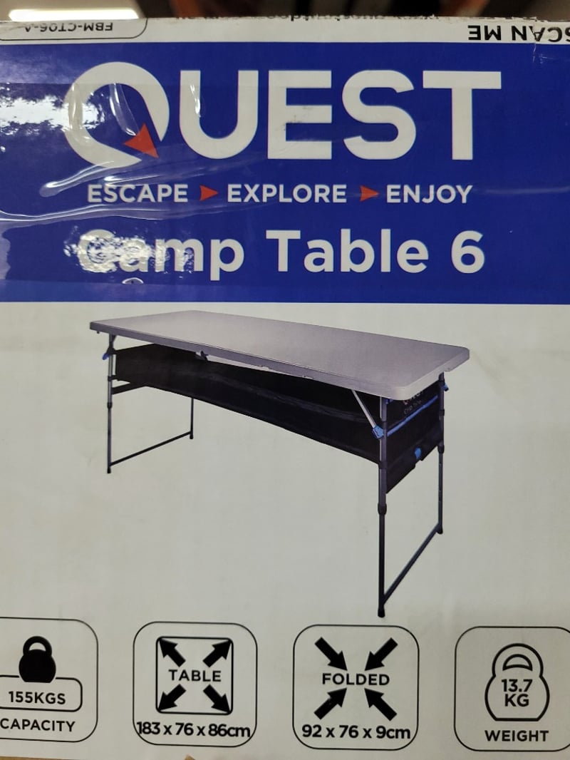 Quest, Grill Table/ Camp Table Grill Dimensions 153 x 65 x 86Table Dimensions 183 x 76 x 86SOLD AS LOT