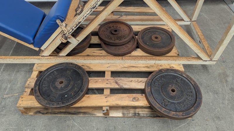 Leg Press Machine, Use With Free Weights, Padded Seat, 2 × Bars, Bar Catchers, Includes Free Weights, Dimensions: 140cm(H)×142cm(W)×185cm(D)