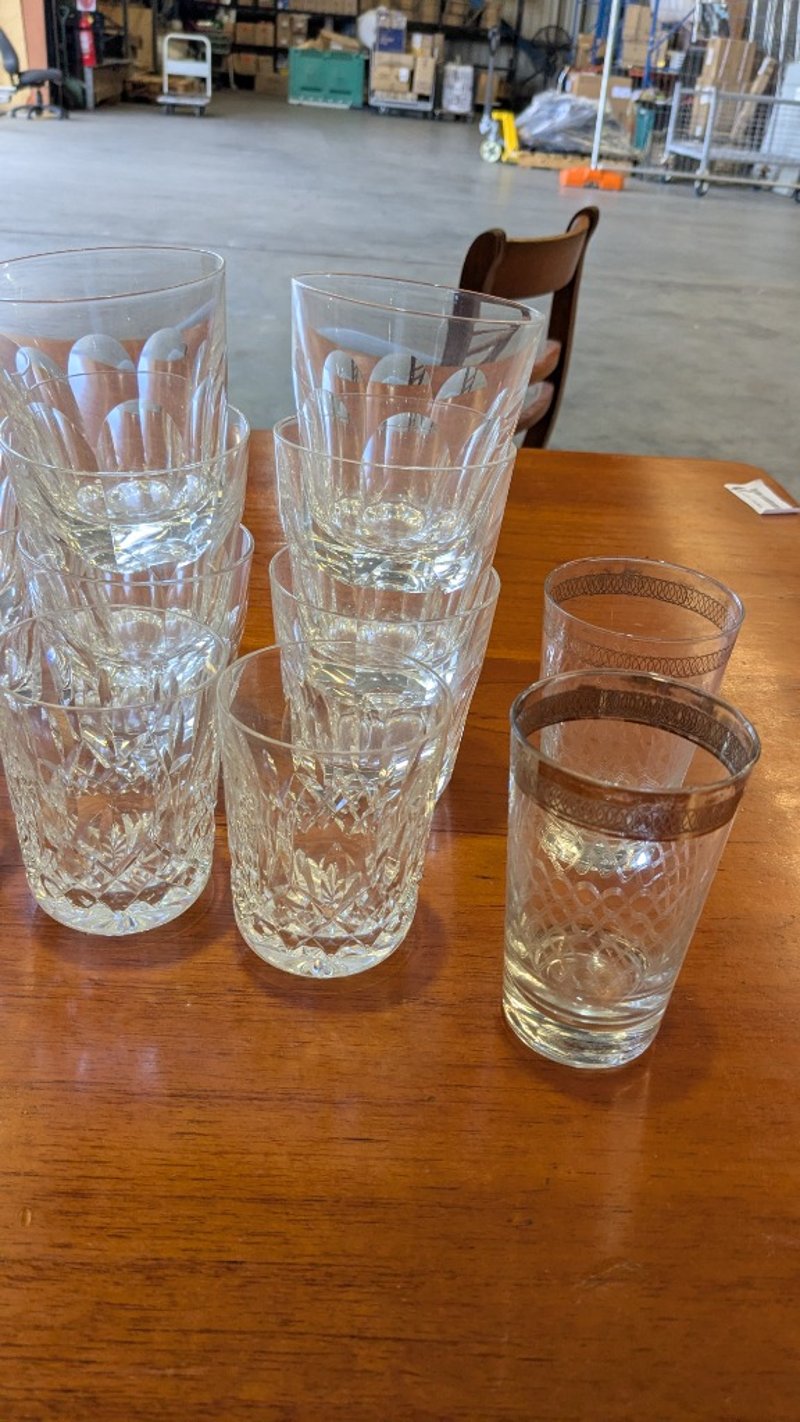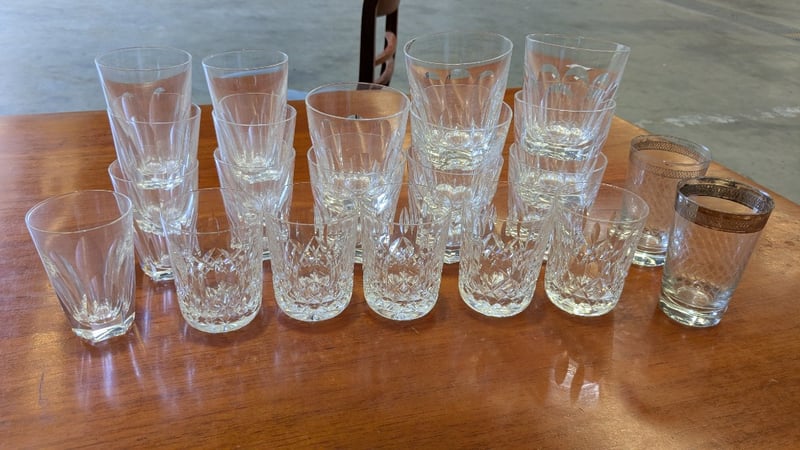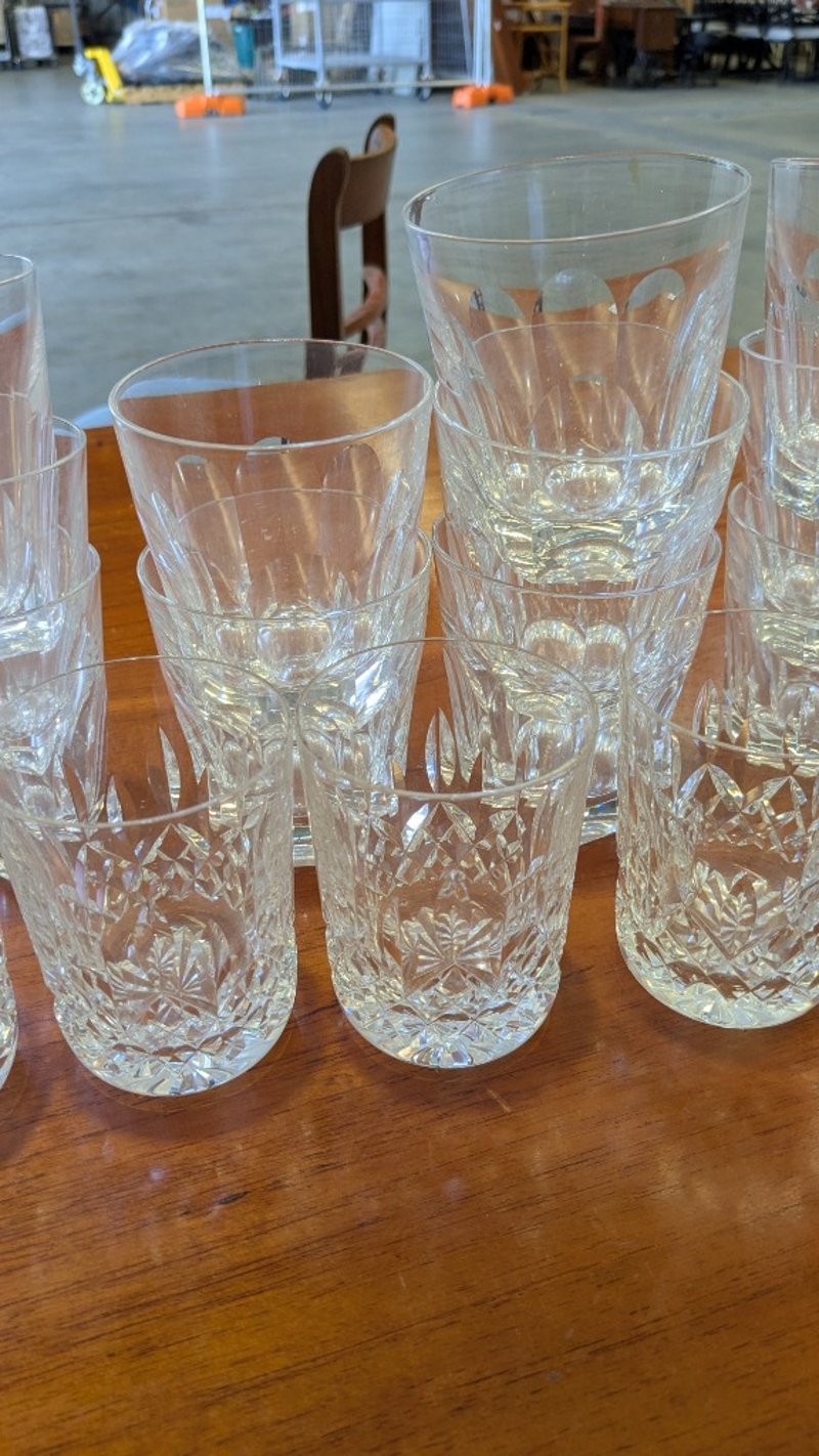 Assorted Glassware, Includes Crystal, Various Sizes, Quantity to Photos