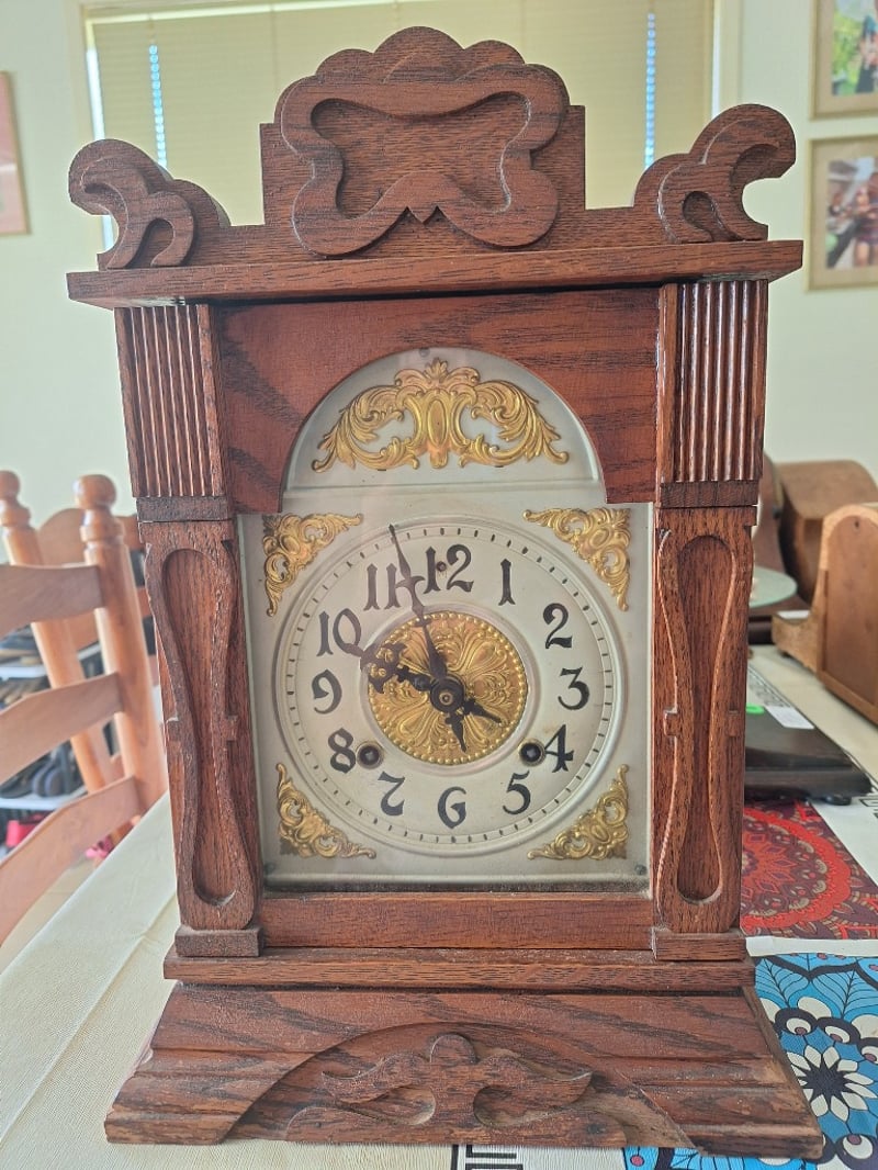 ANSONIA WOODEN MANTLE CLOCK WITH FAUX GOLD DETAILING