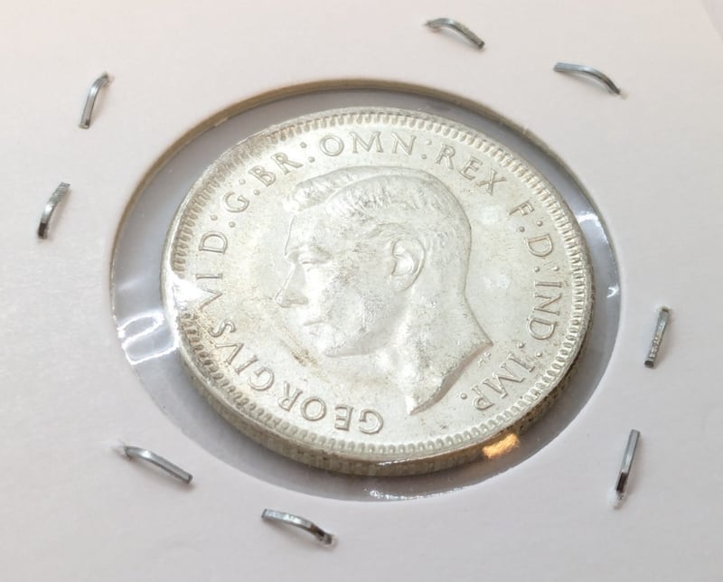 COLLECTION OF GEMS AND COINSIncludes Winton Opal Parcel (250 Cts), 1.1Cts Opal (Stunning Greens And Blues), 20 Gram 999% Silver Credit Suisse Antique Fine Silver Bar Turned Into Pendant, Ef+ 1943 Shilling, Marbel Trinket Box584436+7