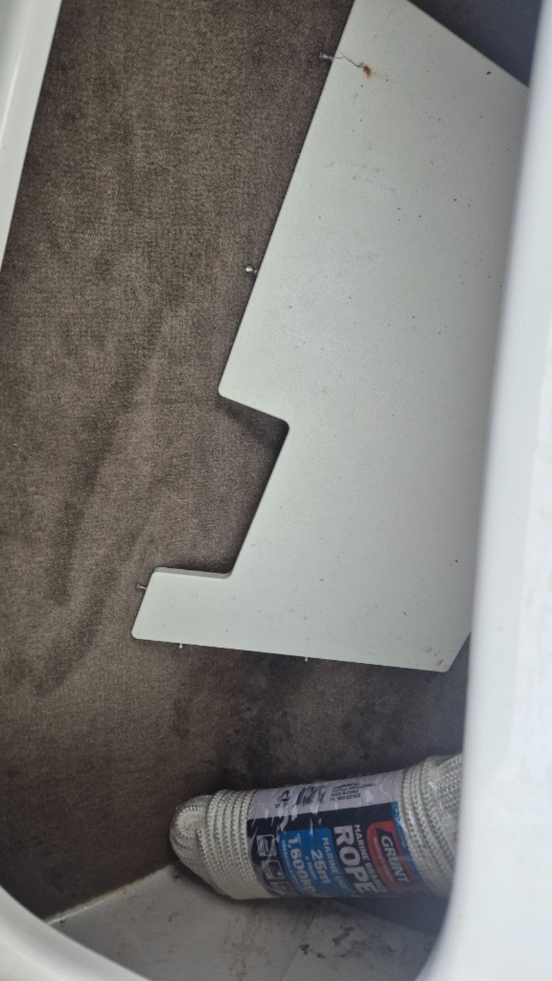 Note: Cannot access battery to start boat or turn isolator on. Wood drilled on top of access.