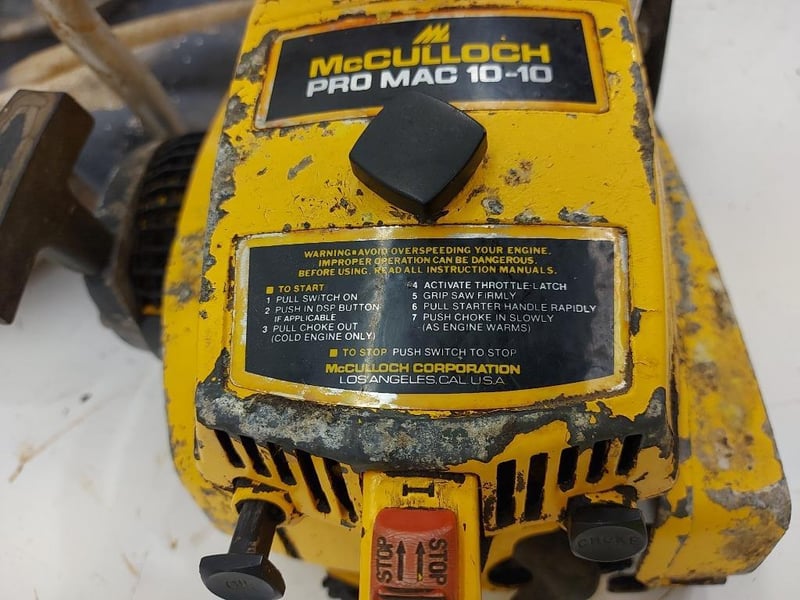McCulloch Chainsaw, Model PRO MAC 10-10, Colour Yellow, Dimensions 79cmW×28cmH×26cmD