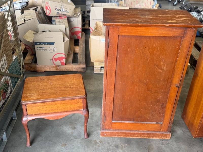 2 x assorted furniture including a sewing stool and a cabinet