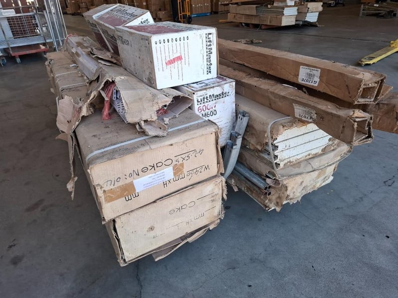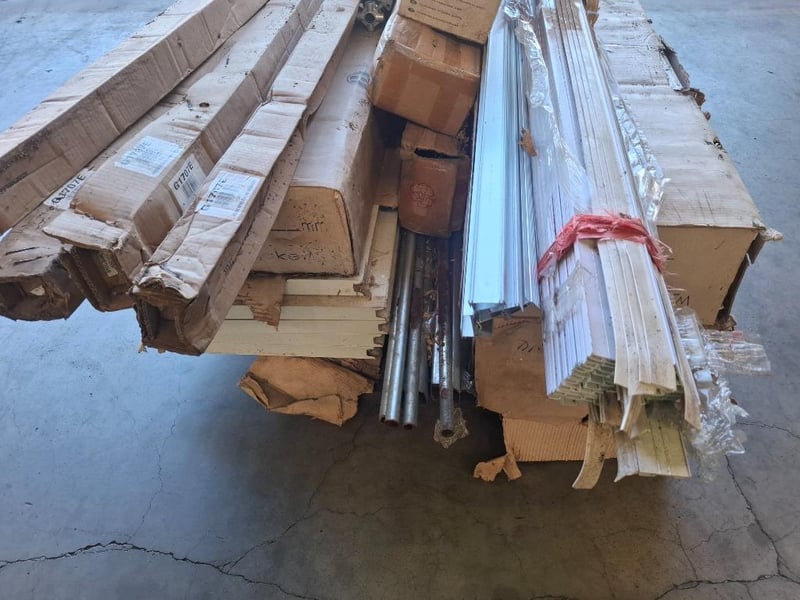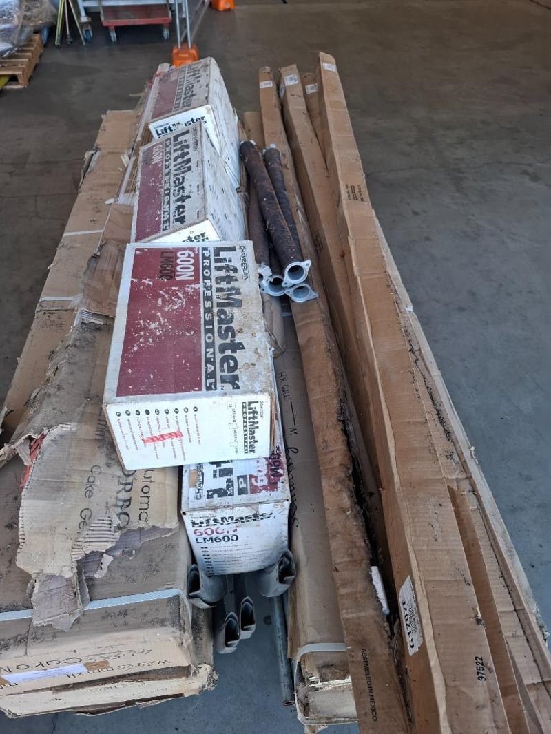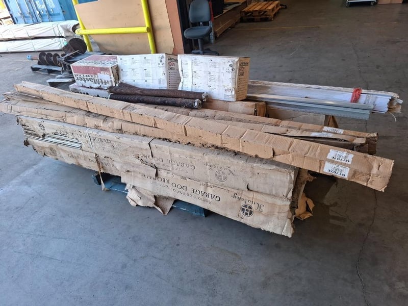 Asortment pallet of remote control automatic roller garage door Qty: 4 setsNote: Damage box, rust parts,dirt, parts may be or not missing, includes aluminium profiles