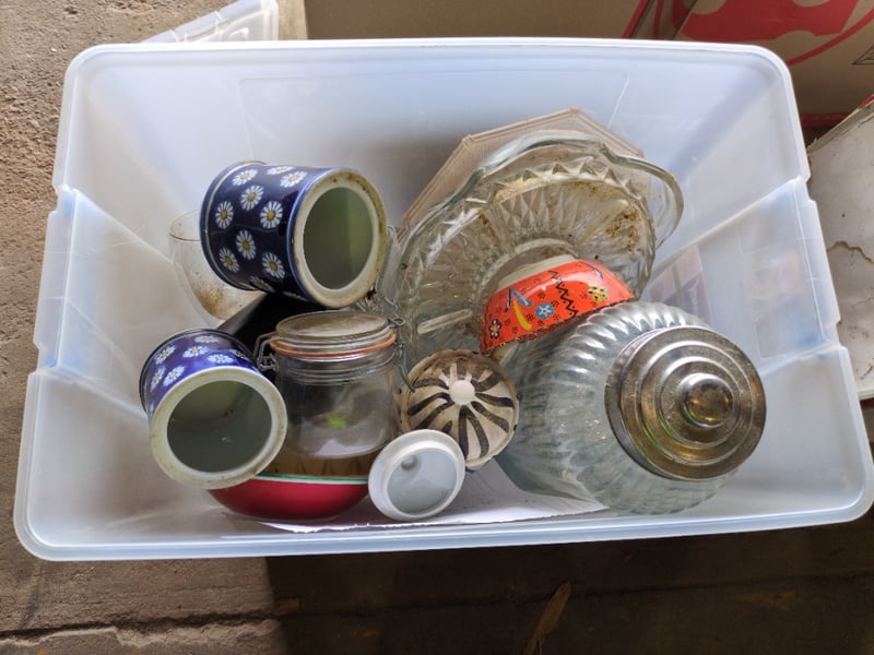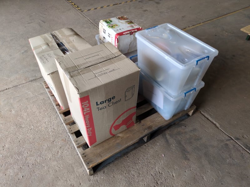 Pallet with Various and Assorted Kitchen Ware including Crockery, Veggie Spiralizer and More. Used Condition. Sold as Lot.
