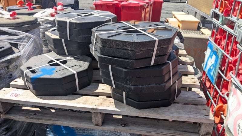 heavy-duty rubber bases, Approx 8kg Each, Quantity to Pallet