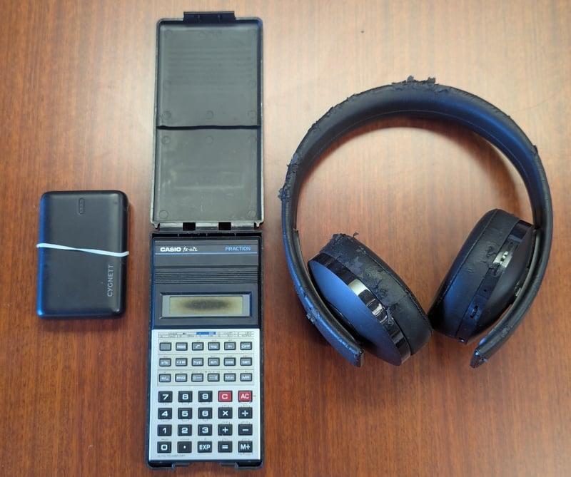 Casio fx-o2L fraction calculator, cygnett powerbank and playstation 4 headphones