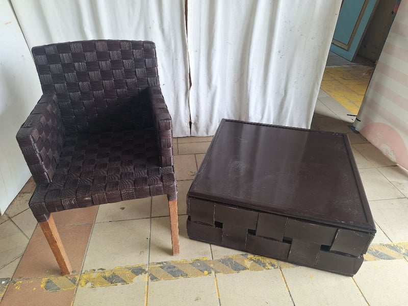 Single Chair With Side Table, Timber & Rattan Style, Brown Finish