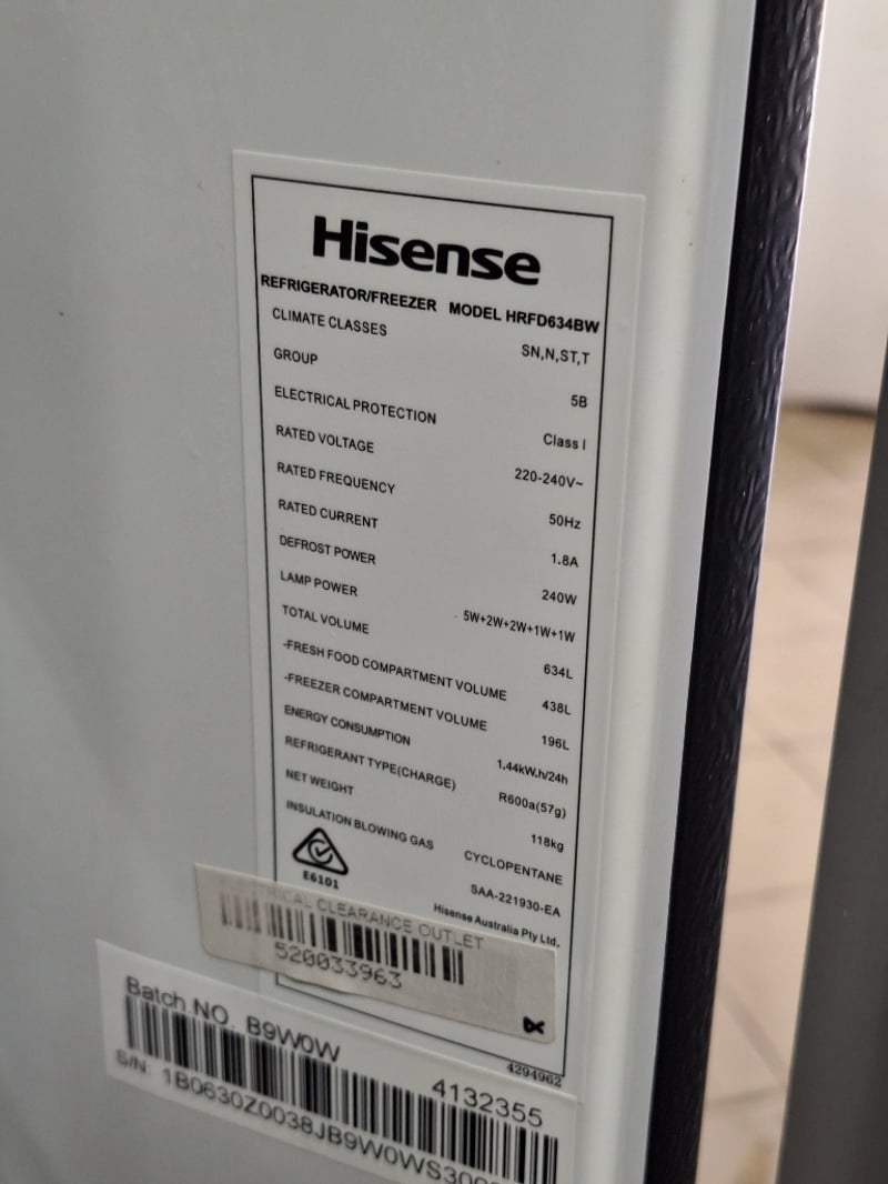 Hisense Refrigerator, Model HRFD634BW