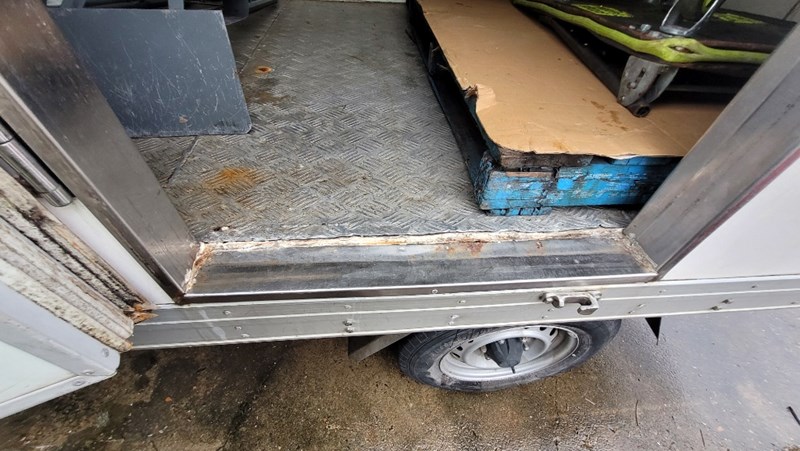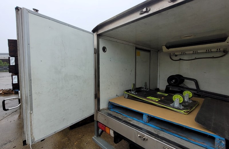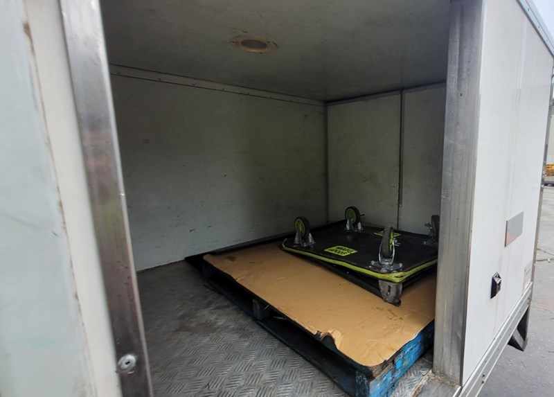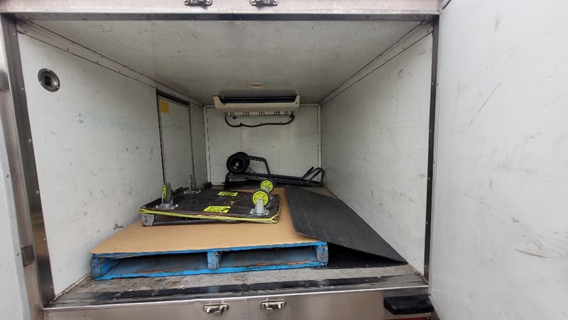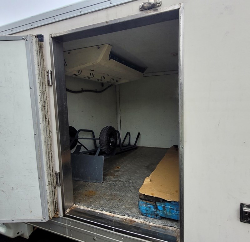 Description/extras: Air Conditioning, Power windows, Cruise control, AUX / USB, Reverse camera, CD player, Log books/Owners manual. Thermo king refrigeration unit (unknown working condition), Canvas seat covers, rubber floormats, spare wheel, 2x stock trolleys,. No keys (Unknown starting/driving condition), marks, scratches, dents.