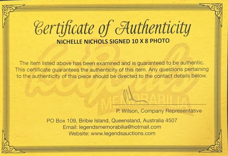 Nichelle Nichols Personally Signed 'Star Trek' 10 X 8 Photo. Grace Dell "Nichelle" Nichols Was An American Actress, Singer And Dancer Whose Portrayal Of Uhura In Star Trek And Its Film Sequels Was Groundbreaking For African American Actresses On American Television.