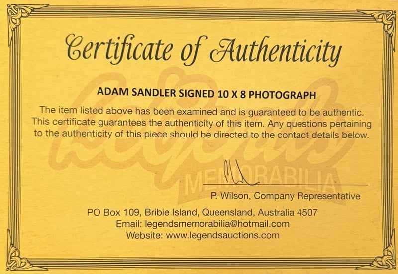 ADAM SANDLER SIGNED PHOTO Adam Sandler Personally Signed 10 X 8 Photo. Adam Sandler Is An American Actor, Comedian, And Filmmaker. Sandler Is Primarily A Comedic Leading Actor In Films. The Item Is Accompanied By A Certificate Of Authenticity. Condition: Good - Refer To Images 585081+34