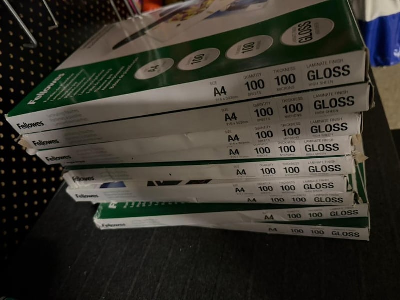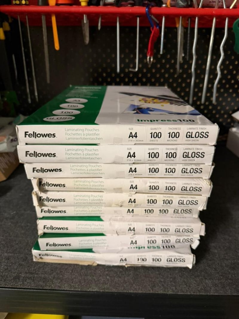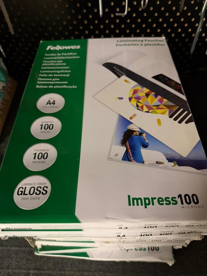 Brand new Fellowes A4 100 Micron Laminating Pouch Gloss Each Book contain 100 Pack