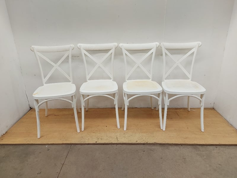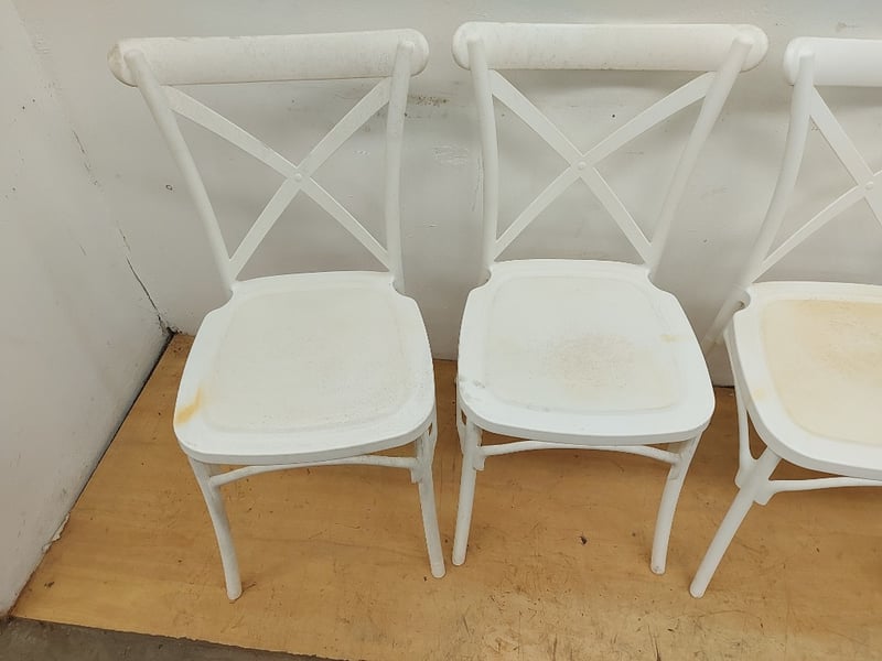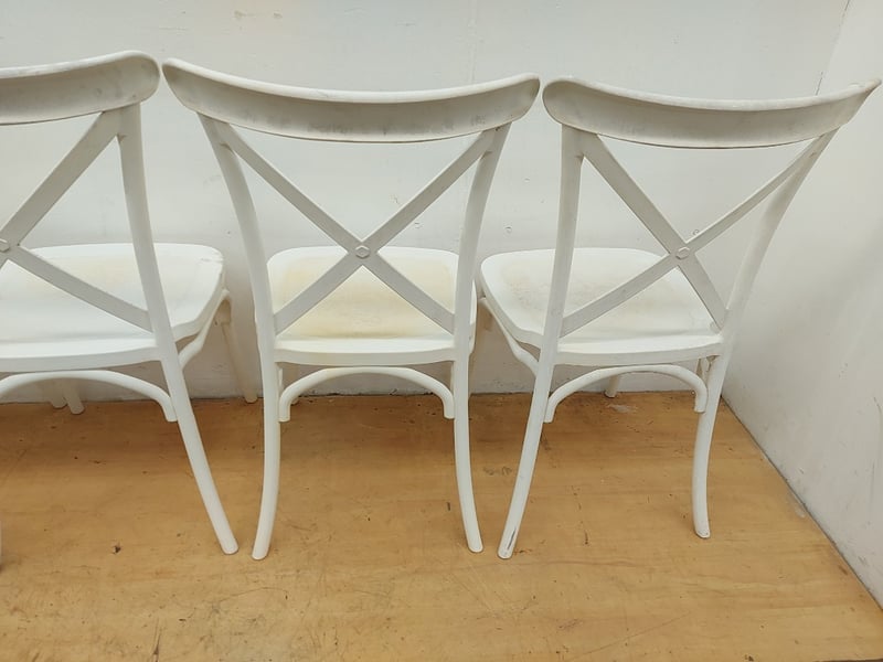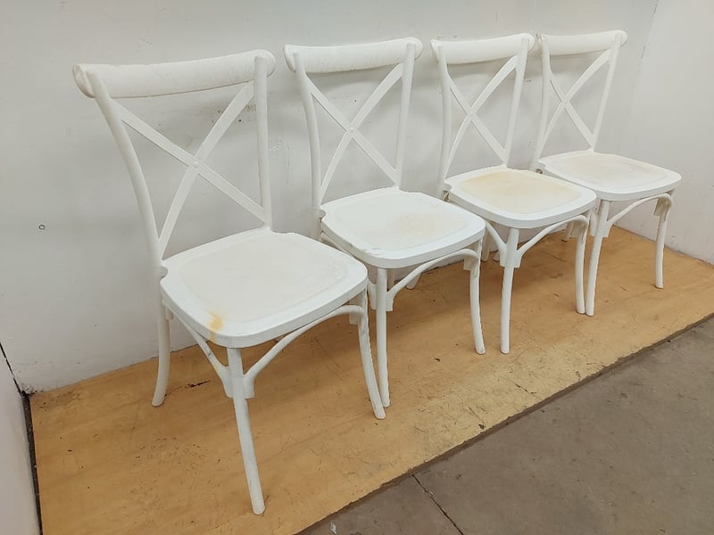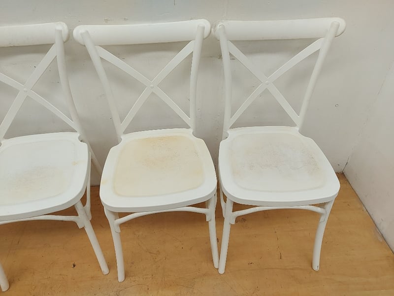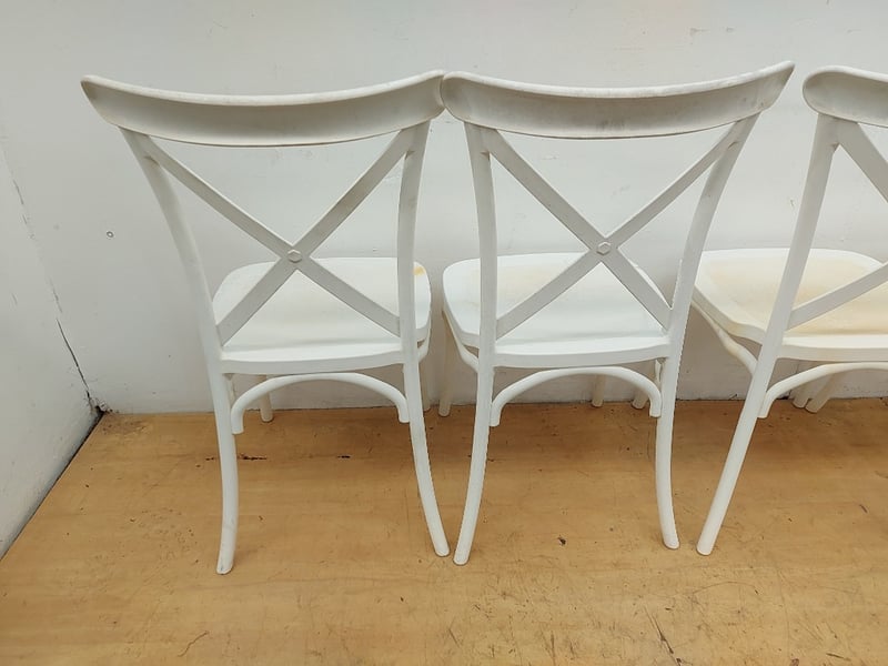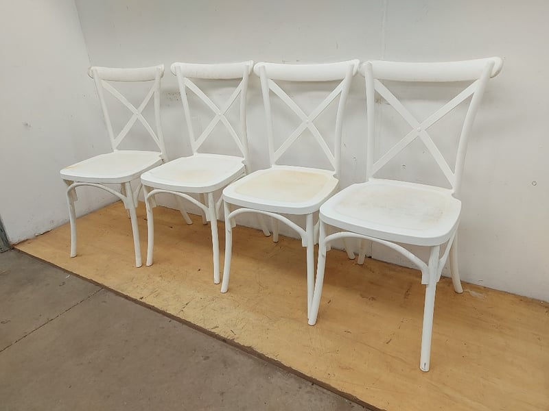 White Plastic Chairs, Quantity 4, Dimensions 90cmH×39cmW×43cmD