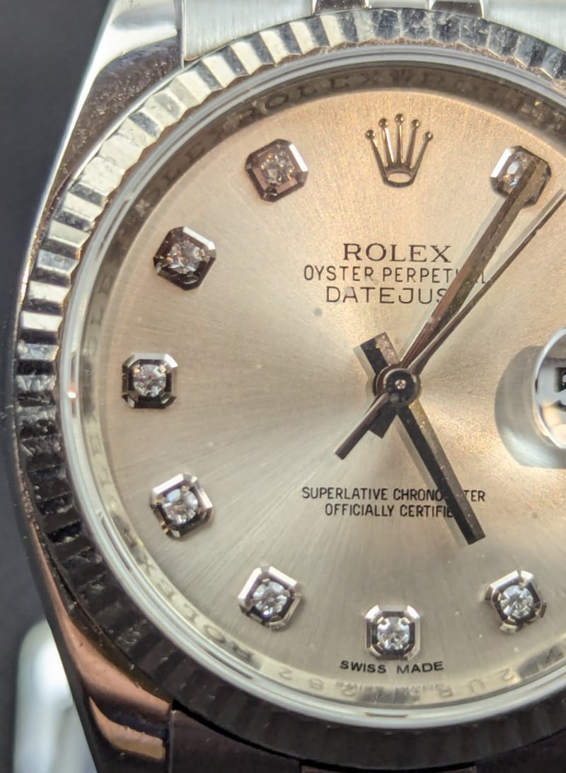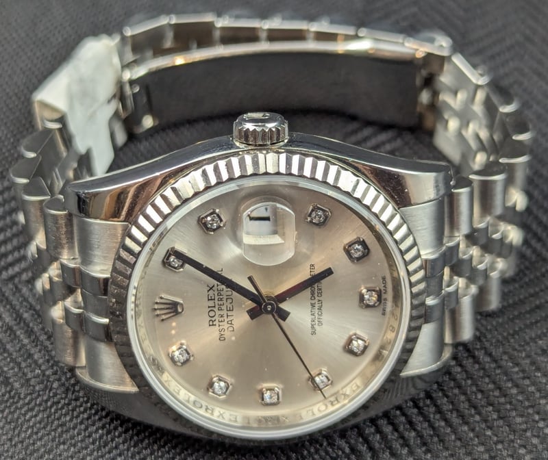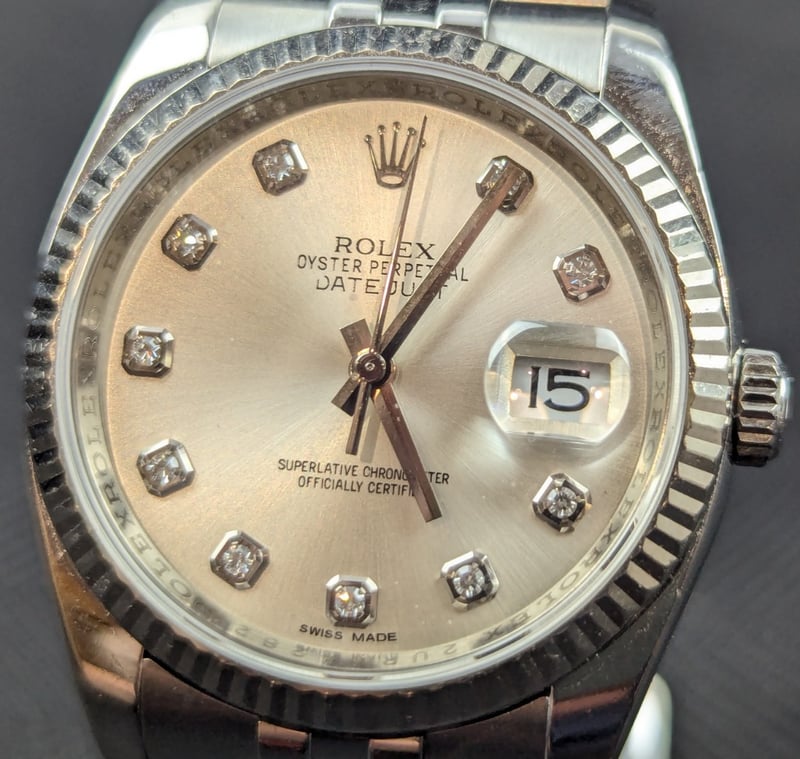 ROLEX DATEJUST 36 116234 BOX: NOT INCLUDEDPAPERS: NOT INCLUDEDCondition: Good - Refer To ImagesAdditional Information: Case Material: SteelCase Diameter: 36MmWater Resistance: 10 AtmBezel Material: White GoldCrystal: Sapphire CrystalDial: SilverBracelet: SteelMovement: AutomaticCaliber/Movement: 3135XD587850+89