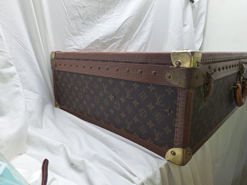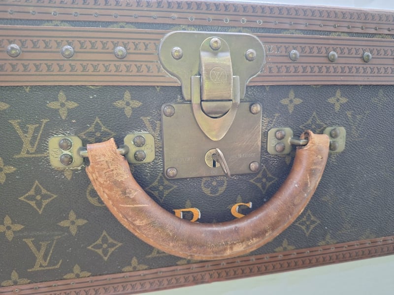 LOUIS VUITTON MONOGRAM CANVAS STEAMER TRUNK WITH LEATHER TRIM