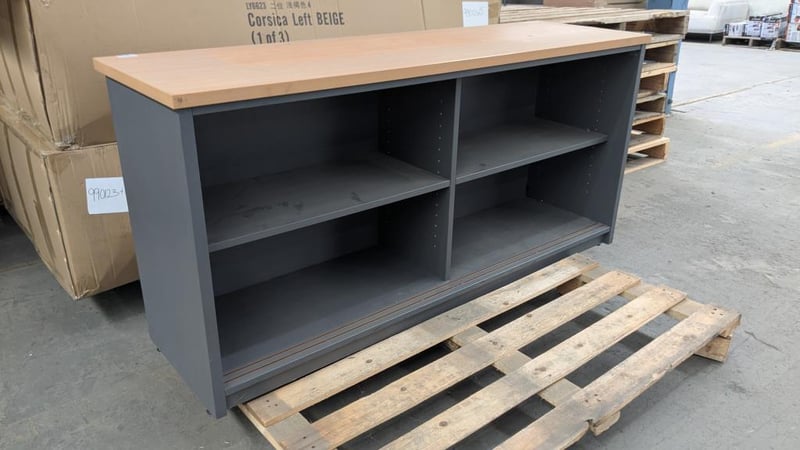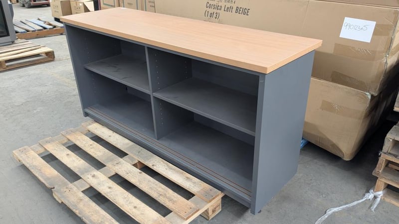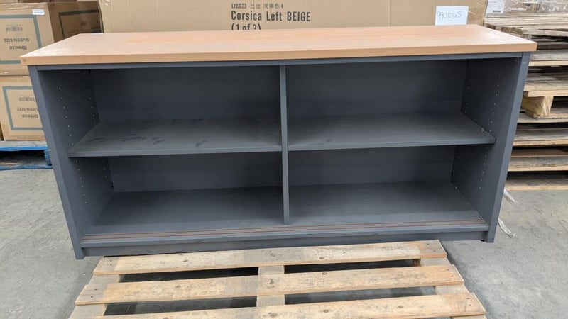 TV unit with storage, Timber, Brown and Grey Dims: 70cm H, 150cm W, 45cm DNote, no sliding doors