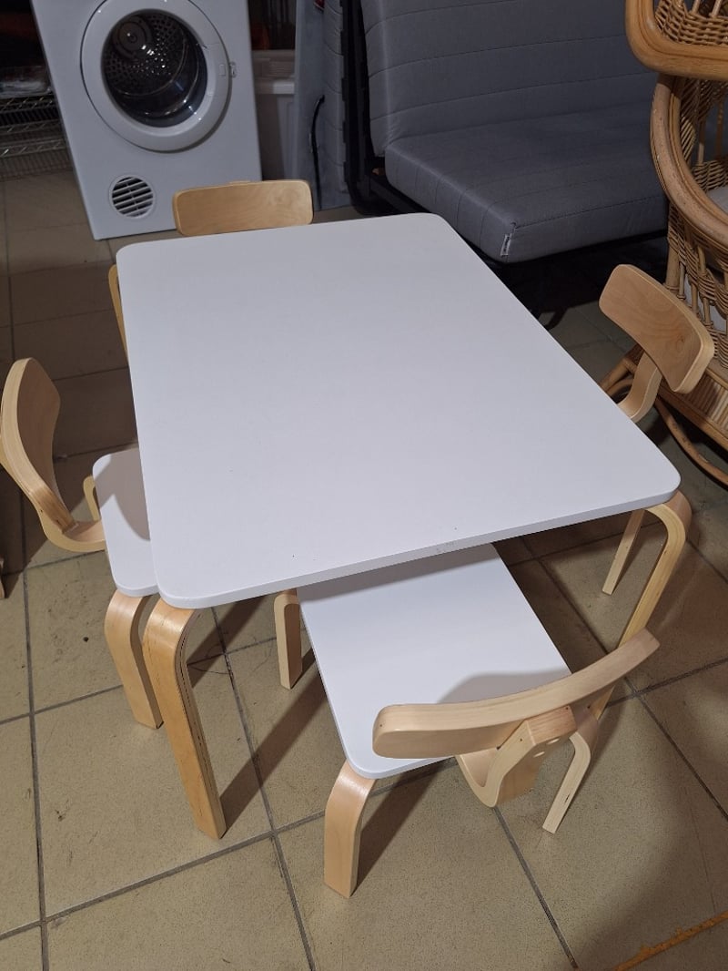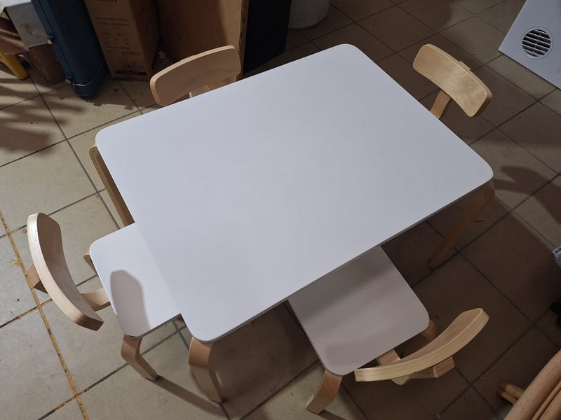 Children's Table, 4-Seater, Timber Style, White Finish