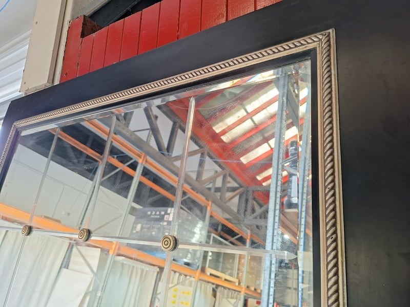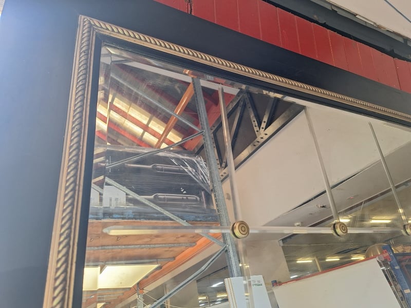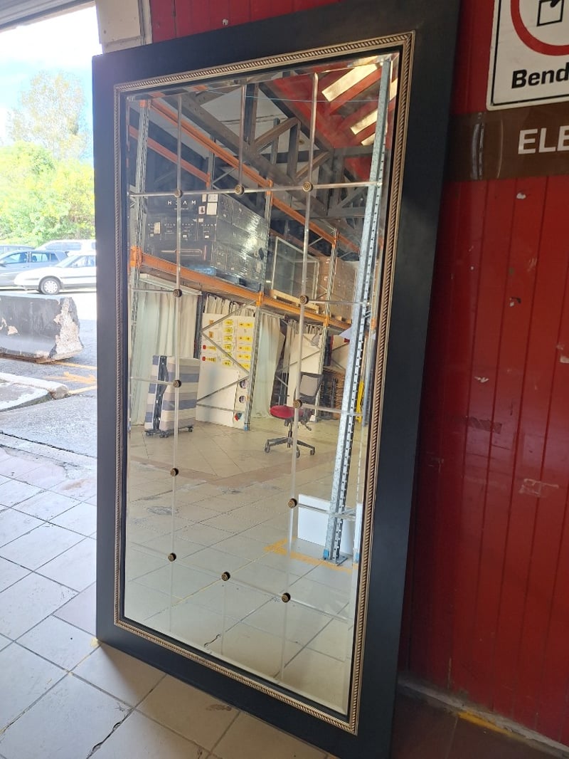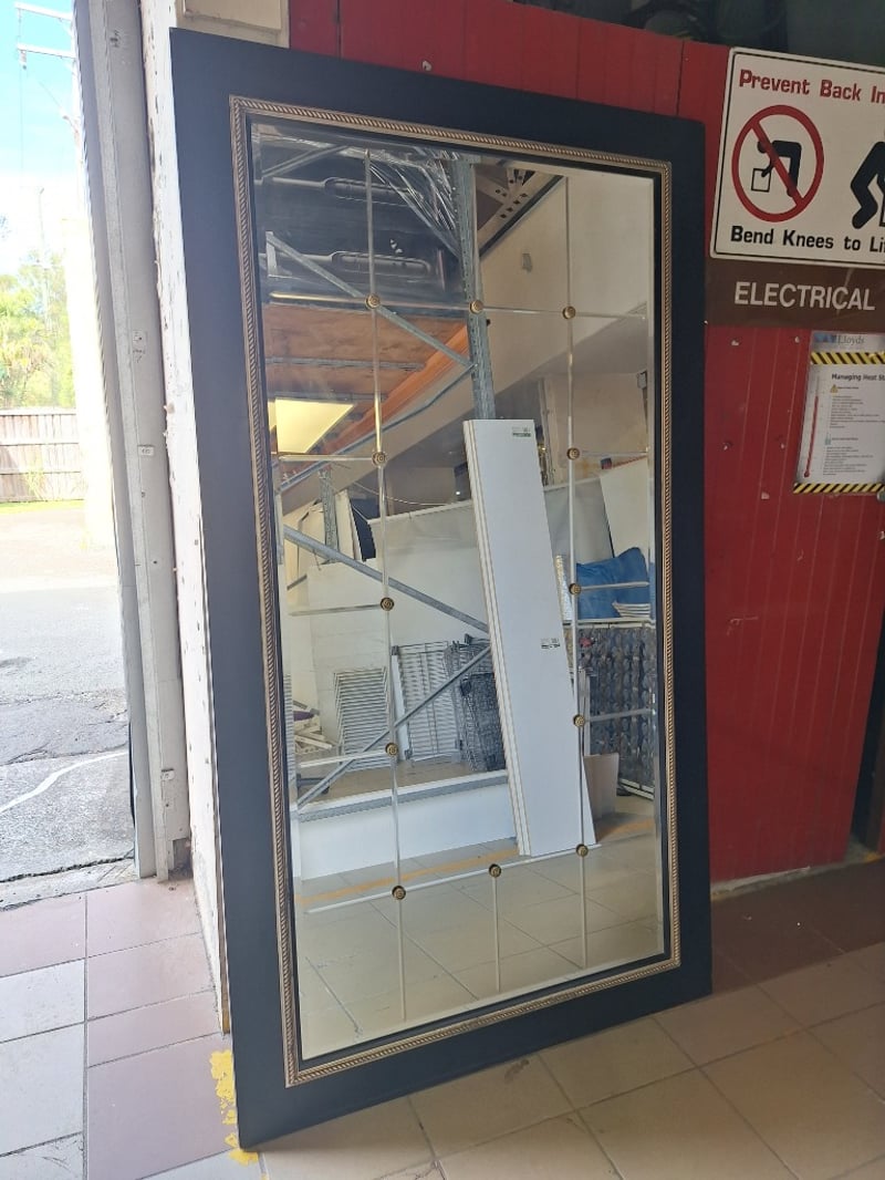 Wall Mirror, Timber Style, Black & Gold FinishDimensions H:116cm W:208cm D:3cm