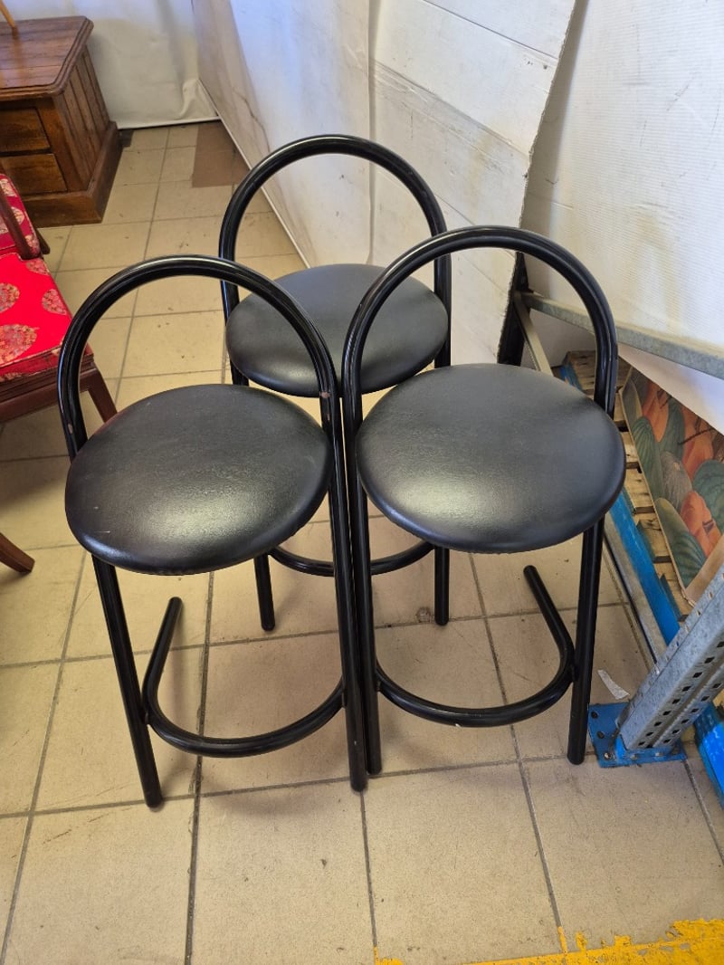 x3 bar stools, black Dimensions: H: 87cm W: 42cm D: 45cm SOLD AS LOT