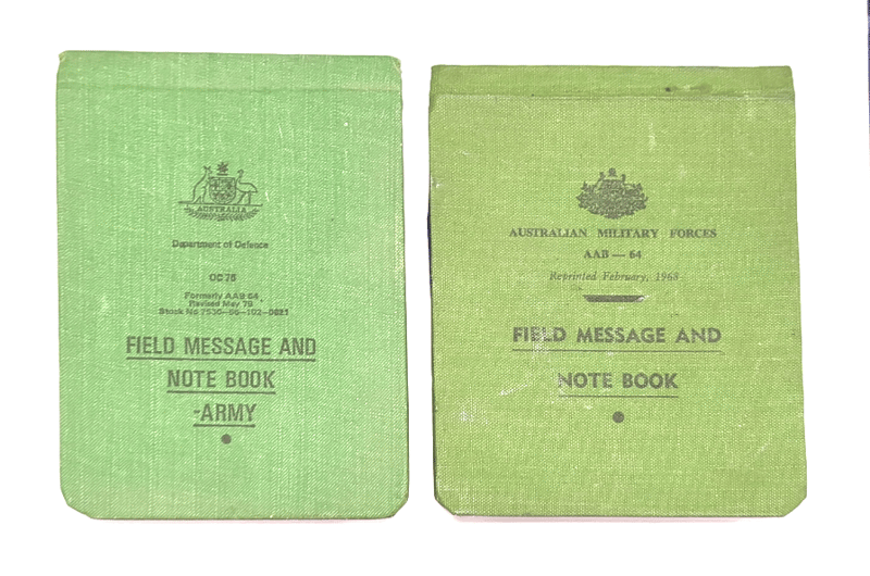 AUSTRALIAN MILITARY FIELD NOTEBOOKS, QTY 2