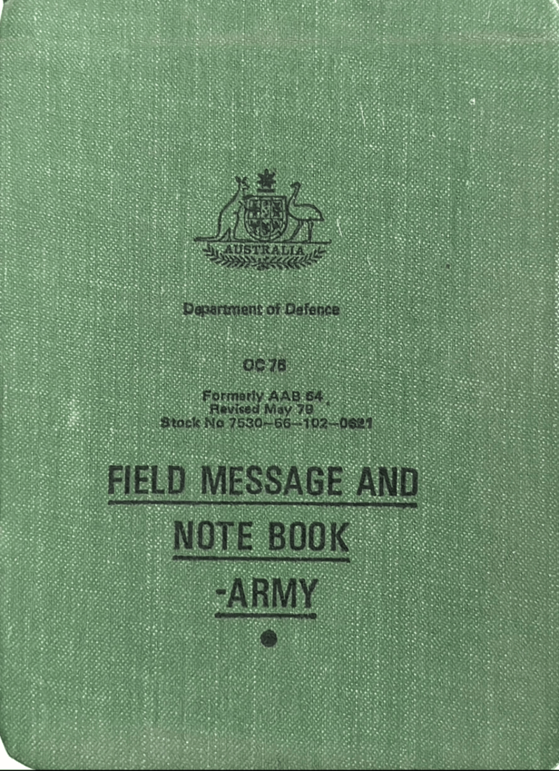 Australian Military Forces "Field Message And Note Book", Australian Department Of Defence Field Message And Note Book