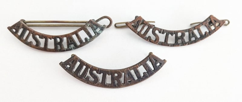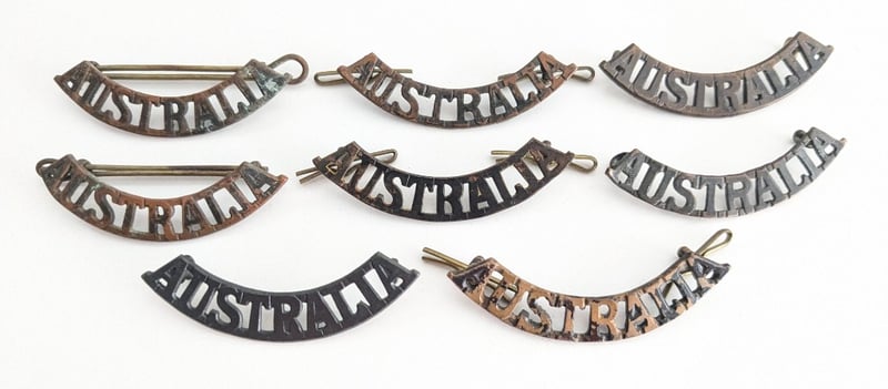AUSTRALIAN MILITARY FORCE "AUSTRALIA" SHOULDER BADGE, QTY 8