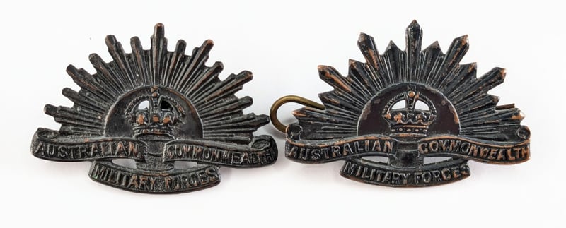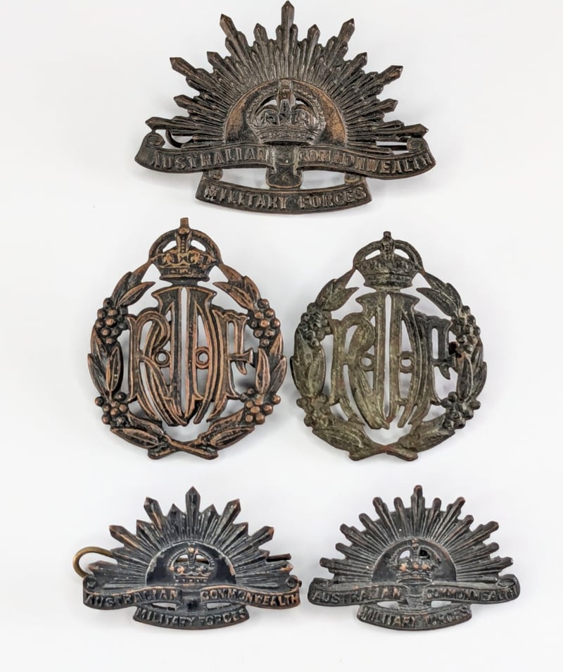 Australian Commonwealth Military Forces 'Rising Sun' Hat Badge X 3, World War Ii Royal Australian Air Force (Raaf) Enlisted Man Cap Badges.