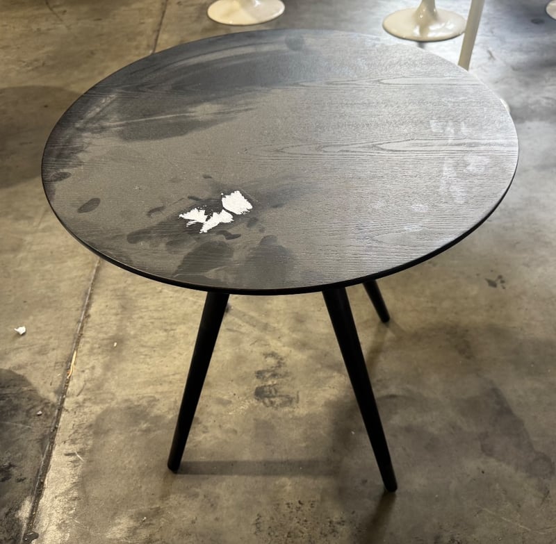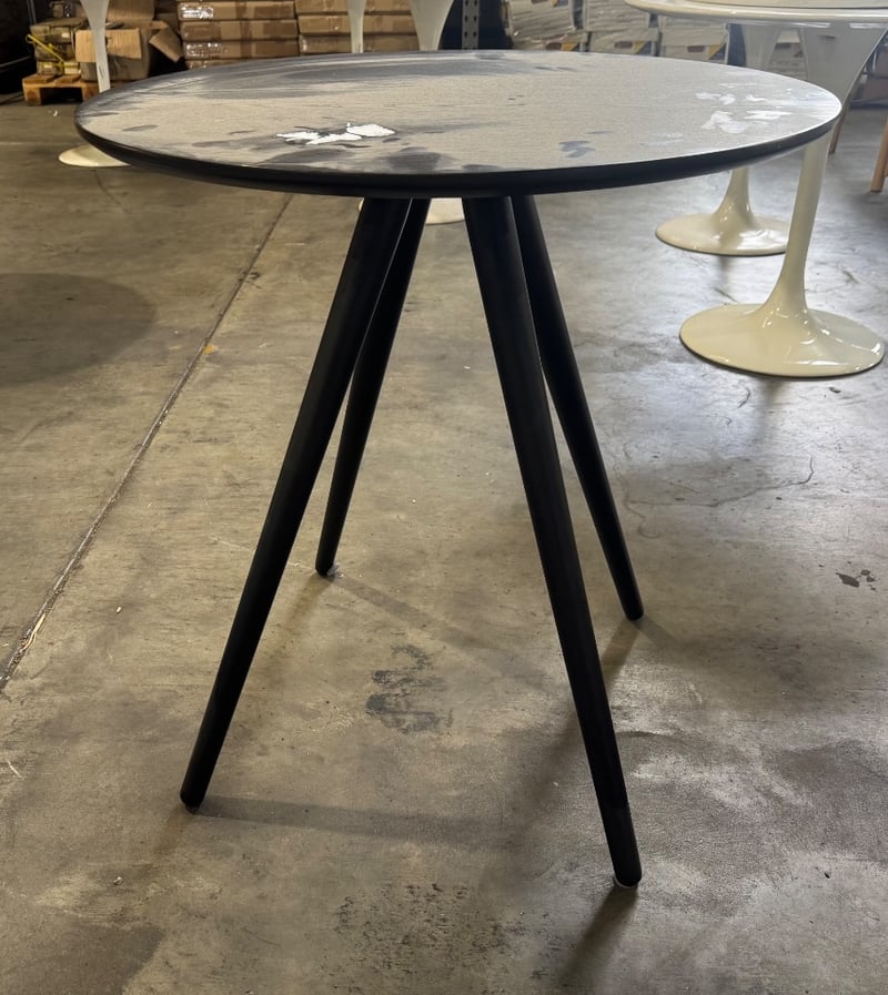 Black round timber table,