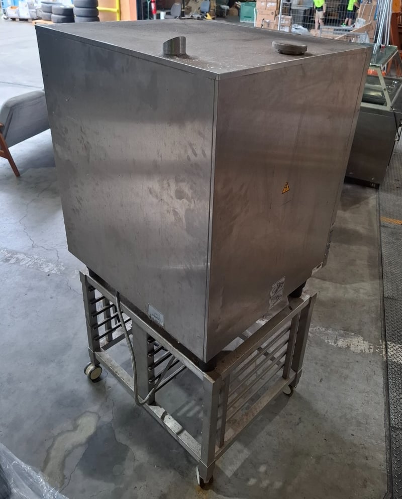 Description/extras: Stanley steel CombiMaster Plus Capacity: Holds 10 x 1/1 GN (Gastronorm) trays,castor wheels, cleaning required