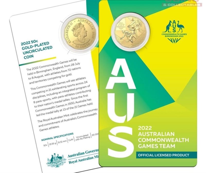 2022 RAM 50C CUNI GOLD PLATED UNCIRCULATED COIN - 2022 COMMONWEALTH GAMES 294150+20