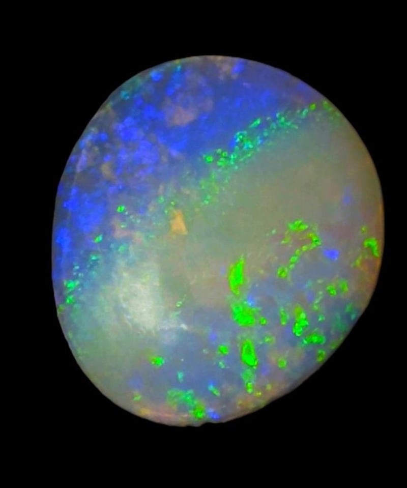 2.4 CARATS LIGHTNING RIDGE CRYSTAL OPAL SLICE. Dimensions: 14x13x2mms Very Nice Crystal With Even Bright Banded Colour. Condition: Good - Refer Images 0582869+4