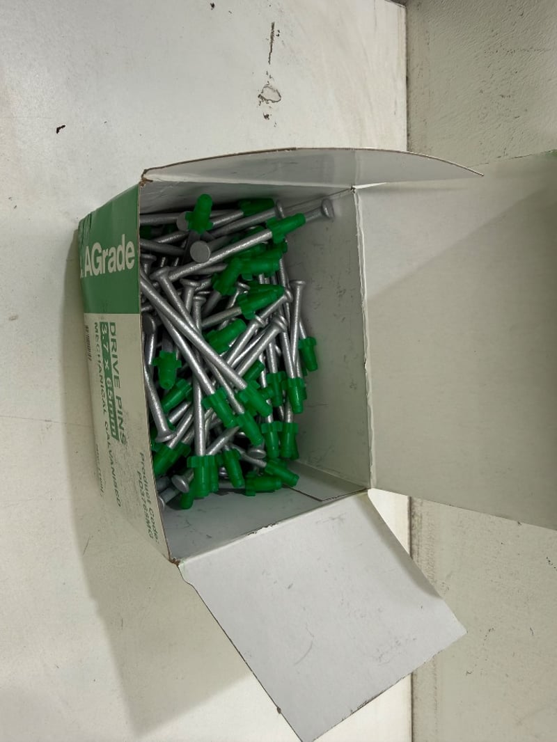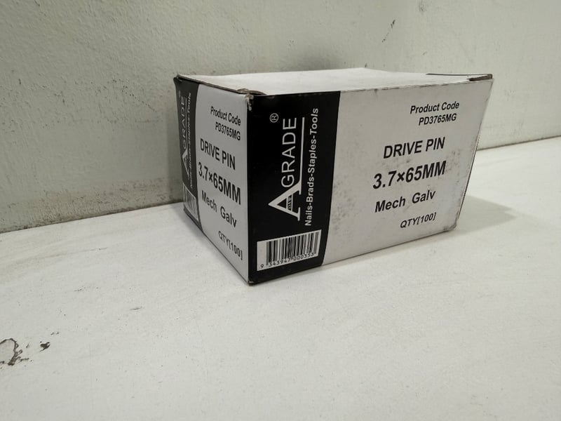 Drive Pins, A Grade, Mechanical Galvanised Pins, Assorted types. 100 pins per box. Product code PD3765MG.