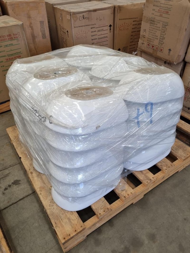 RRP $3969, OVAL COUNTER TOP CERAMIC BASIN. Qty 36 to pallet, Sold as pallet lot.
